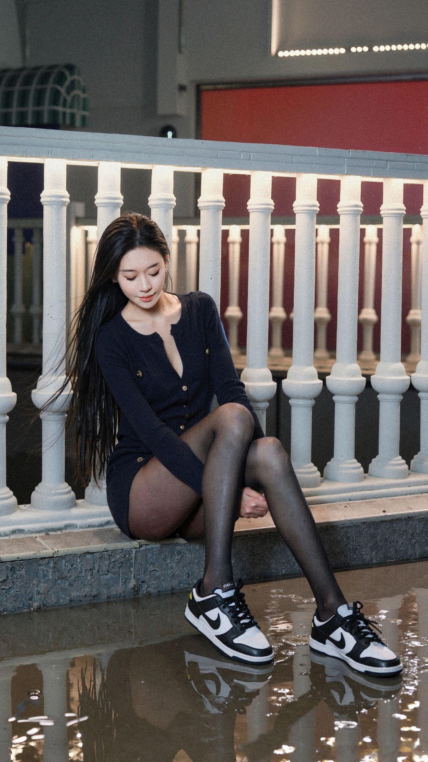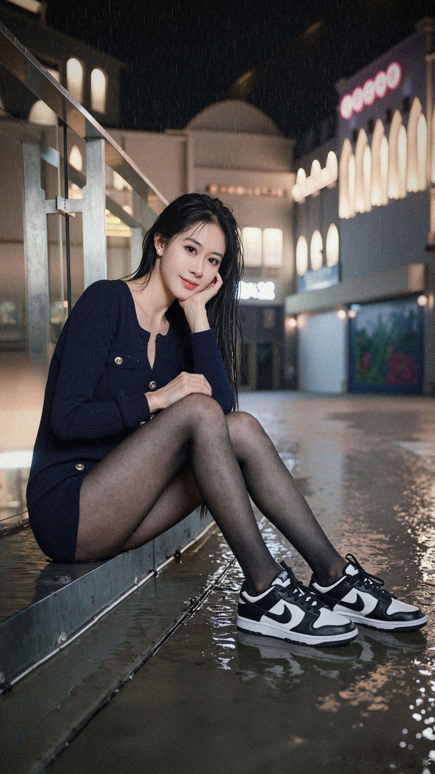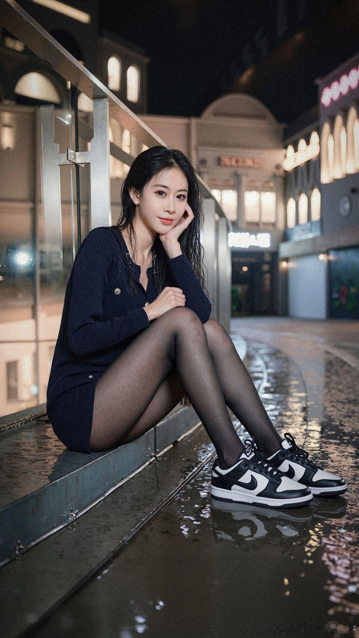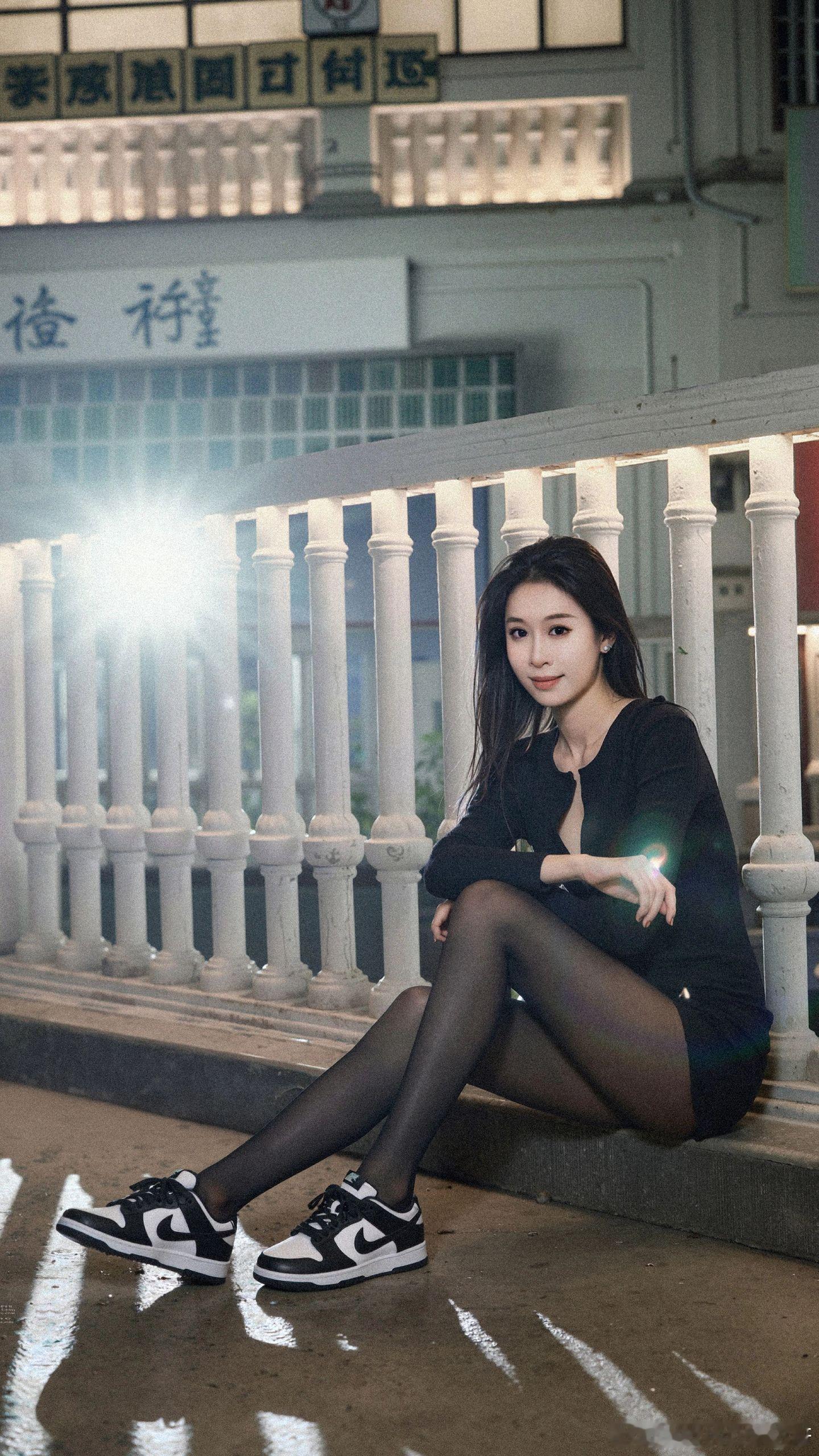 《红白衣伴夜的明柔》外滩灯火浸在江波里,霓虹将夜色晕成碎金,轻落她身侧——