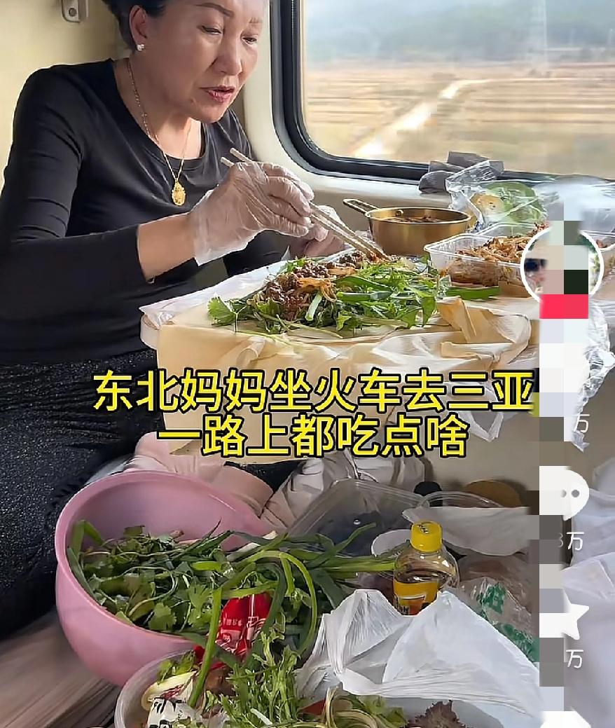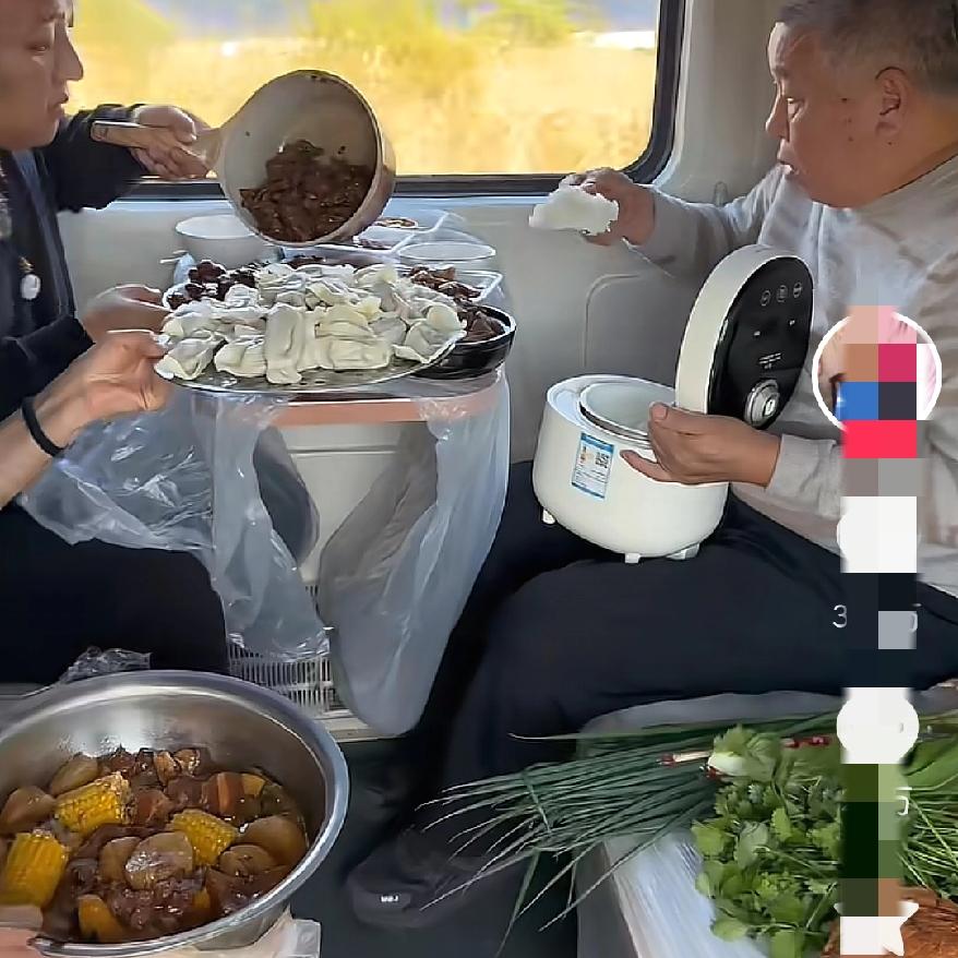 谁能告诉我 东北人坐火车去三亚 干饭场面这么硬核吗,满当当的摆的全是食物。 绿皮火车的小桌板上,东北大姨摆开了卷菜的阵仗,大爷端出炖肉饺子,连电饭煲都搬上了车。 话说旁边的人看到不会馋吗?而且这些东西味儿大不大呀,这么多能吃完吗?会不会浪费? 也许他们觉得,这些装满车厢的食材和饭菜,不是累赘,而是对“奔赴美好”的最好诠释。 我们总说旅行的意义是看风景,可东北人的旅途告诉我们,好好吃饭,也是风景的一部分。你坐火车出门会带哪些家乡味?东北人三亚过冬 东北人在海南 东北人三亚游 东北人三亚过年 东北旅行必吃 火车过海南 东北高铁车厢