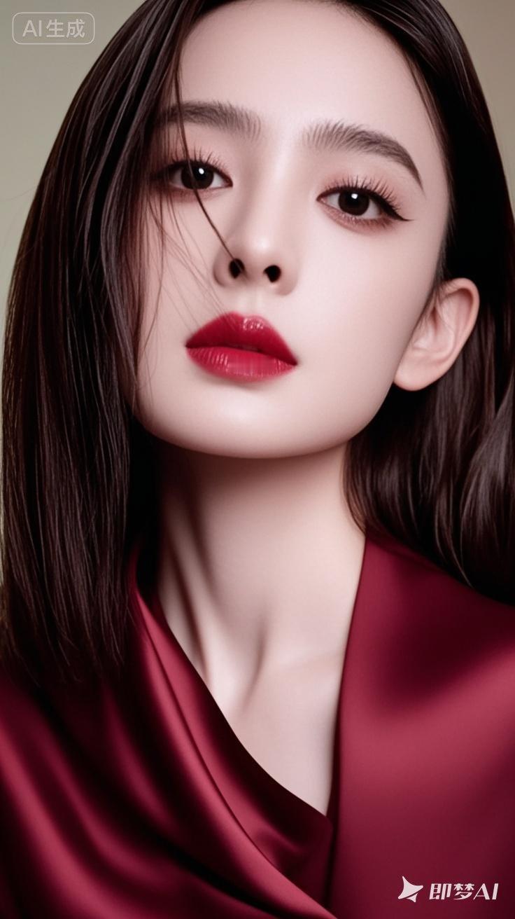 香槟缎影裹柔肩,红唇一抹胜春光红唇美人照红唇礼服