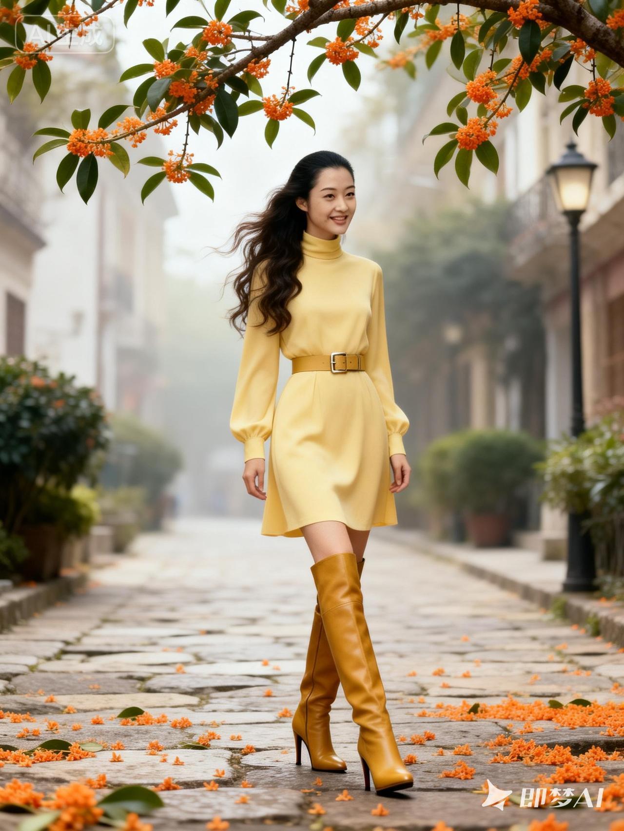 秋日穿搭指南:白色毛衣+牛仔裤+棕色靴子,简约时尚!