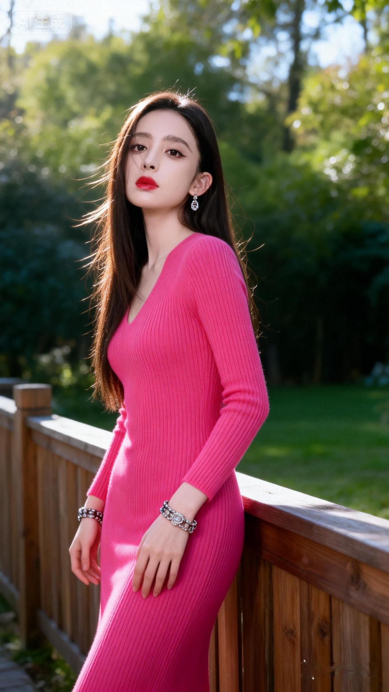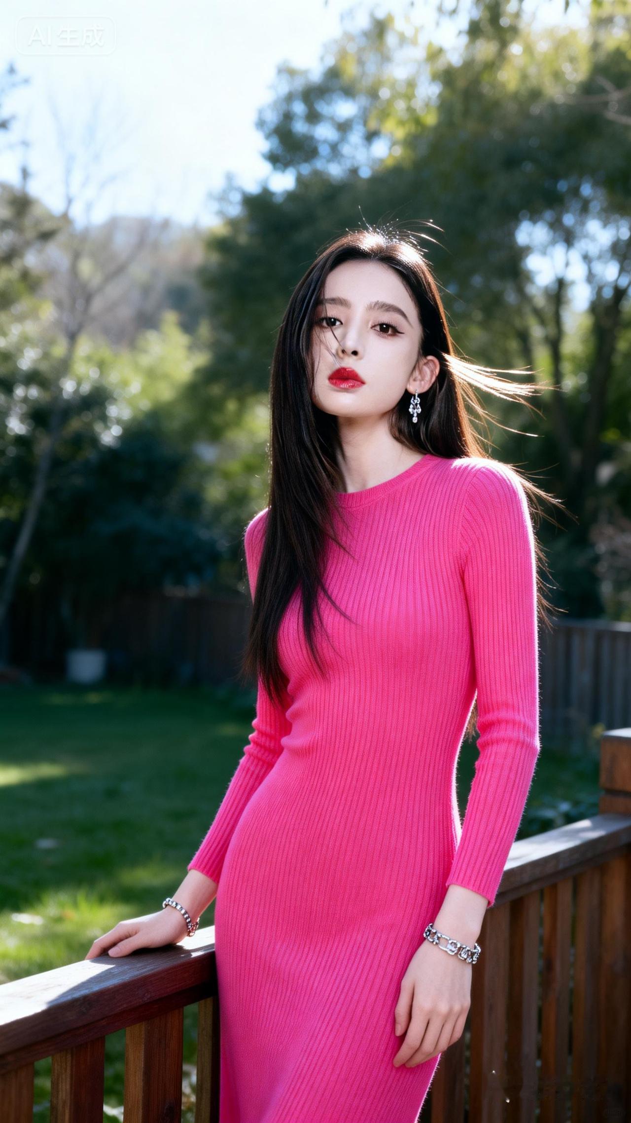 粉裙少女漫步在绿意盎然的花园中,阳光洒落,美不胜收。🌸🌿💗