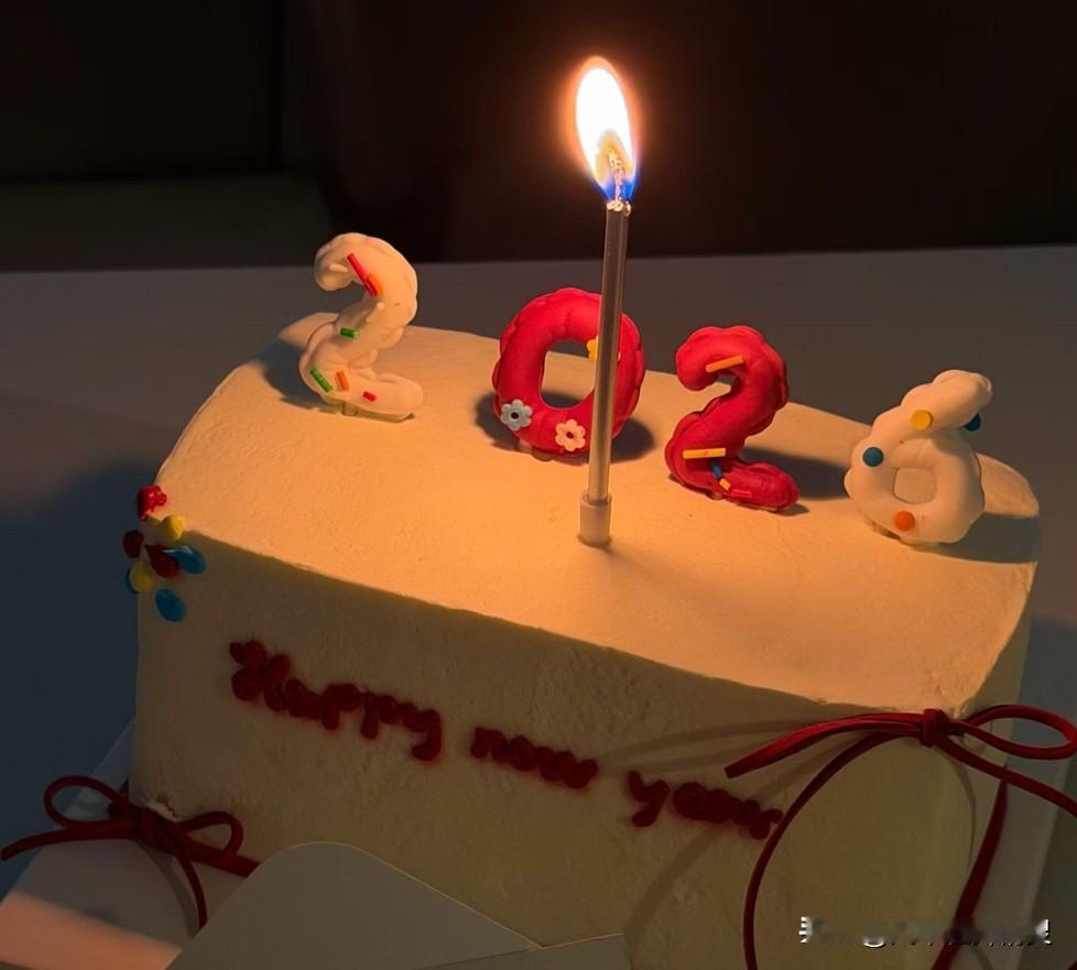 跨年夜对着这个2026的蛋糕闭眼许愿! 蜡烛的火苗一跳一跳的,心里瞬间就暖乎乎的。 旁边的小卡片写着新年快乐、万事顺遂,字写得歪歪扭扭的,可比那些花里胡哨的祝福走心多了。 这一年糟心事儿、开心事儿都掺着来,哭过也笑过,总算是扛过来了。 新的一年不求发大财、走大运,就盼着身边人都健健康康的,自己能少点胡思乱想的焦虑,多些顺顺利利的日子,把想做的事一件件干完,把小日子过得热热闹闹的就行啦。