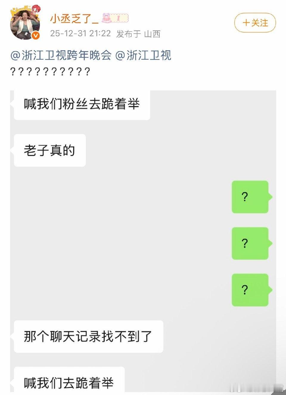 范丞丞粉丝在向浙江卫视维权说浙江卫视工作人员喊粉丝跪着去举灯牌这是发生了什么?为什么让跪着啊?