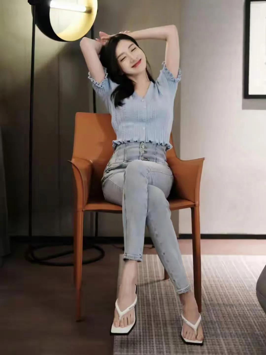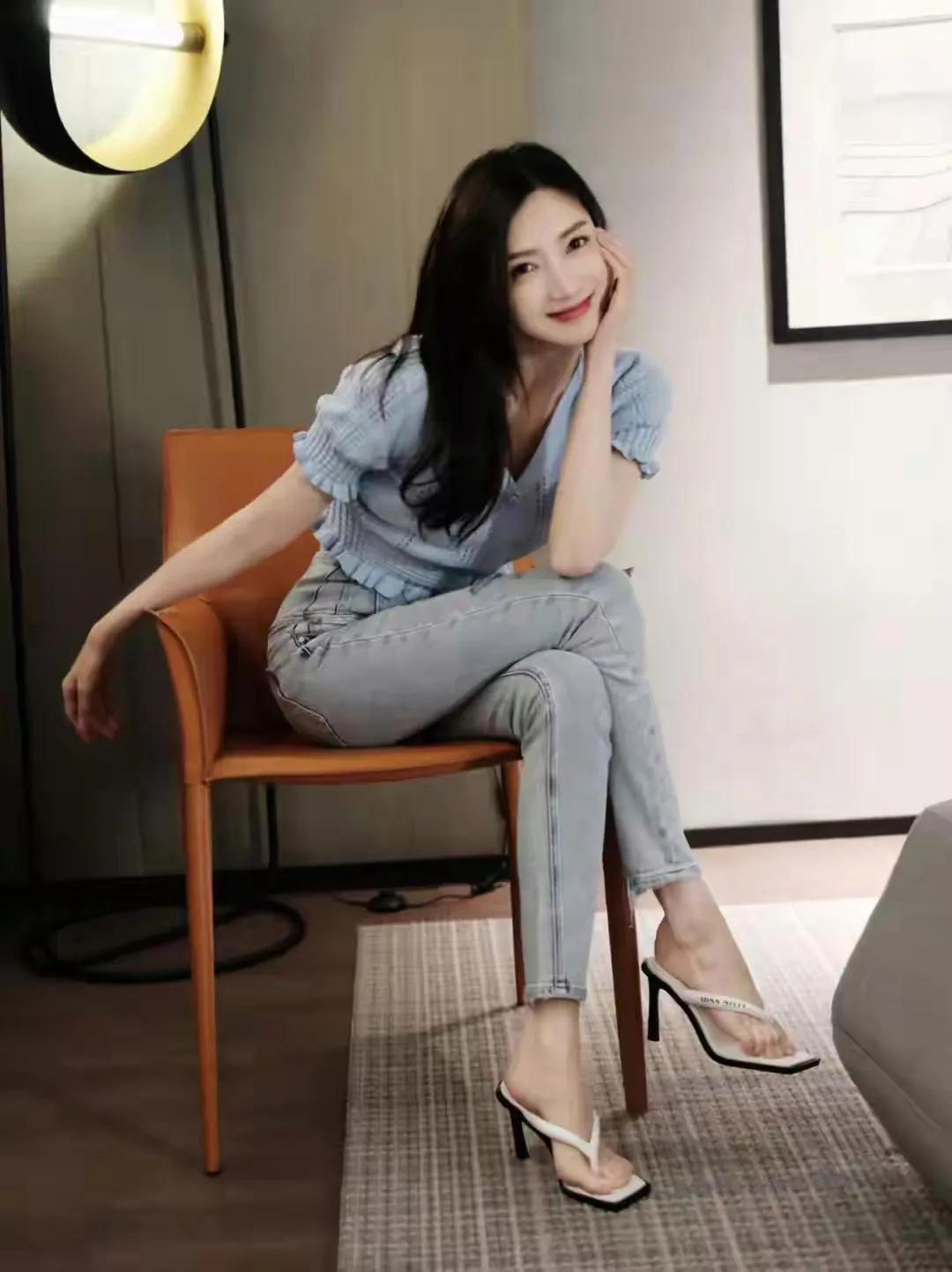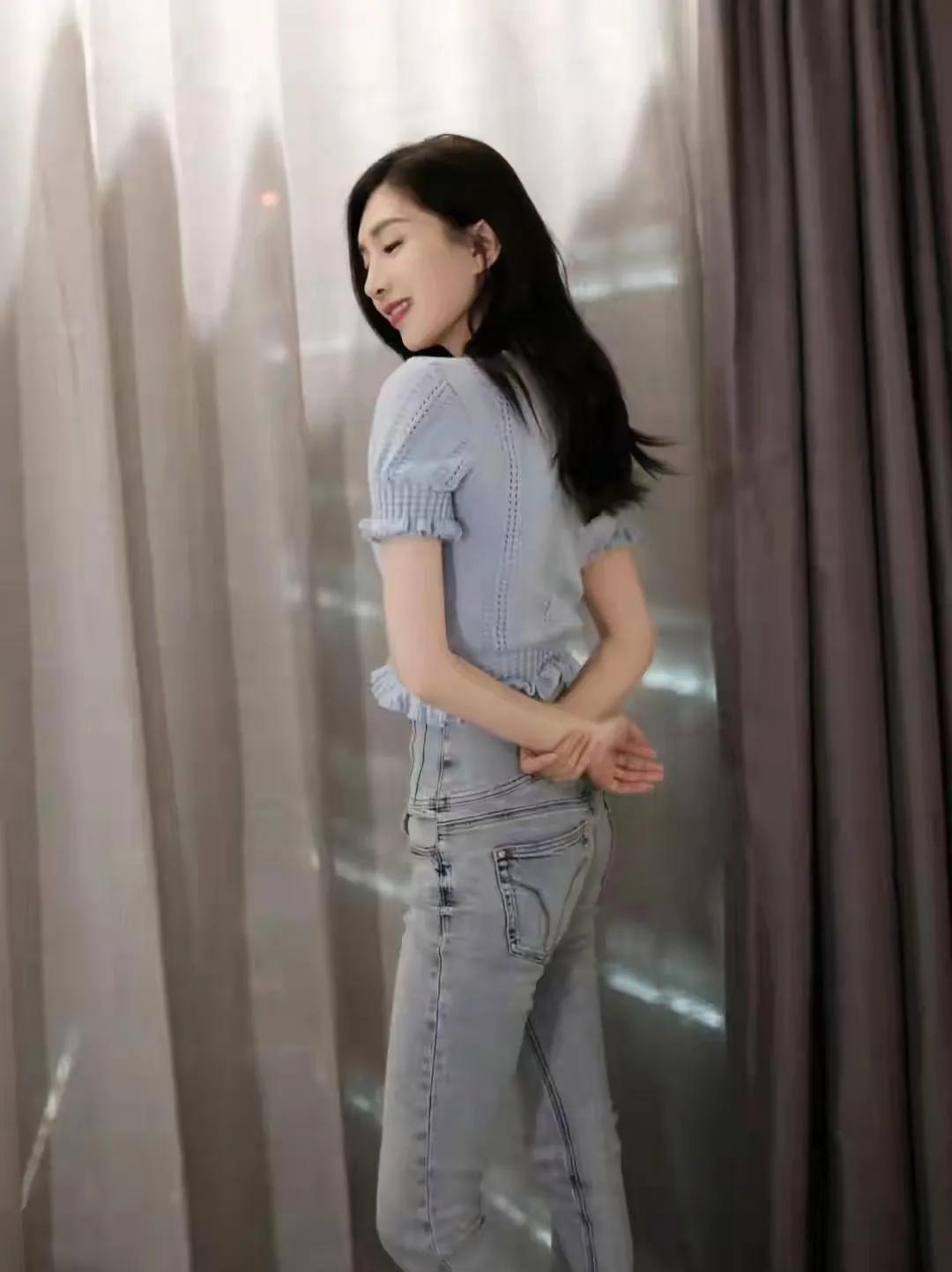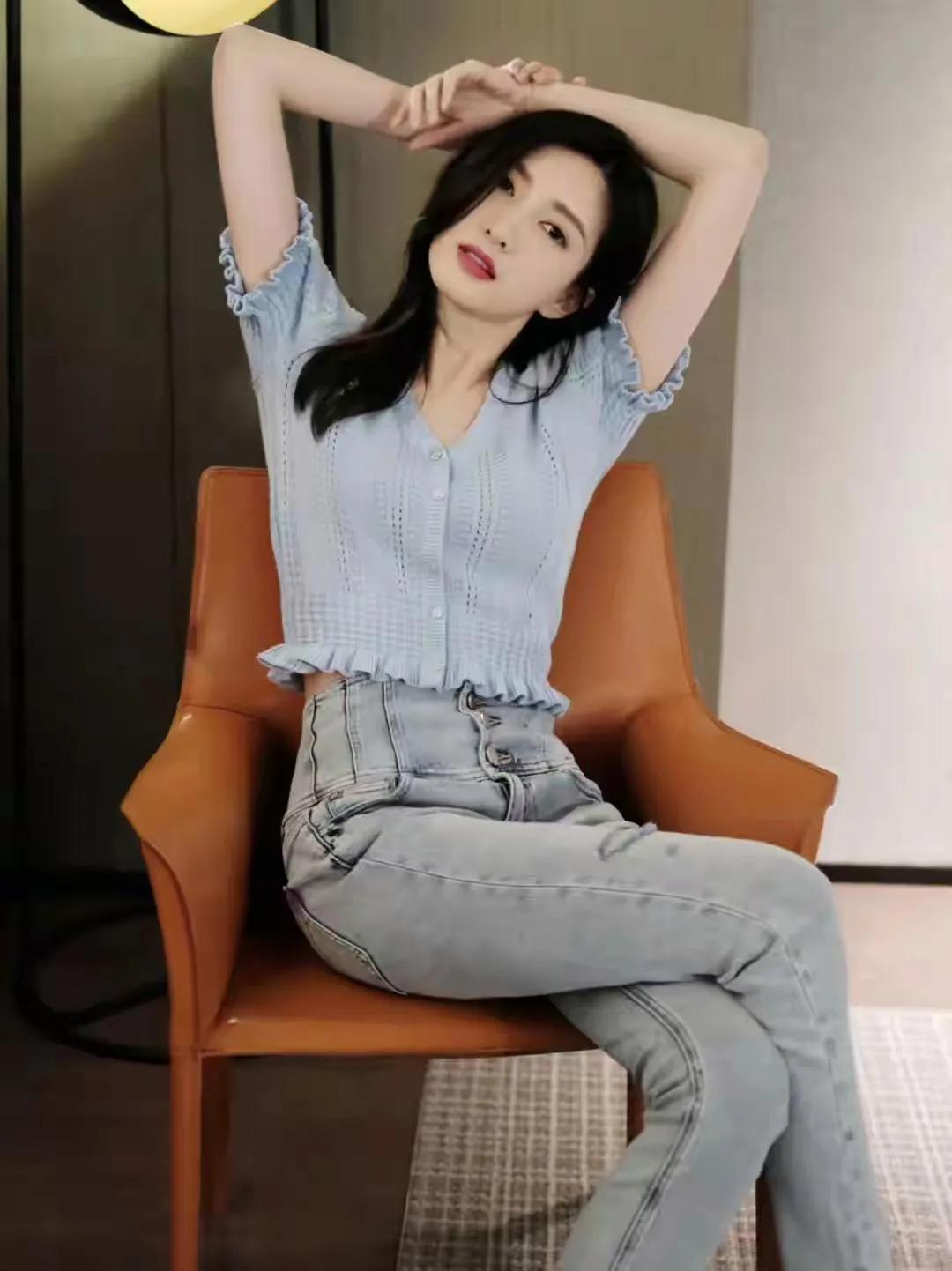 江疏影的优雅“蓝调”时刻✨ 简约的浅蓝色针织上衣,搭配同色系高腰牛仔裤,江疏影将基础款穿出了高级感。 深V领设计和镂空纹理,恰到好处地展现了她的好身材,而荷叶边的下摆又添了几分柔美。整体造型清新又不失性感,完美诠释了什么叫“简约而不简单”。 明星穿搭 江疏影