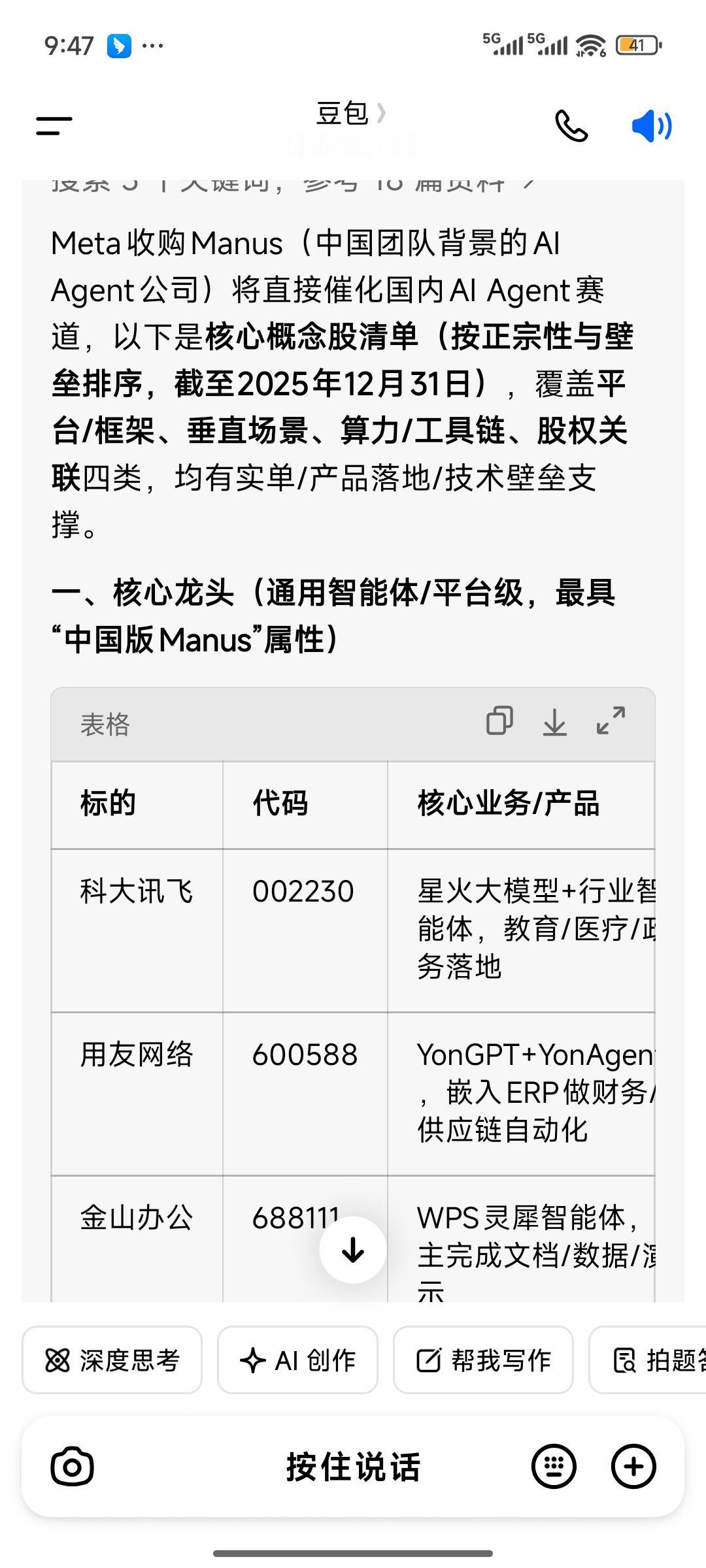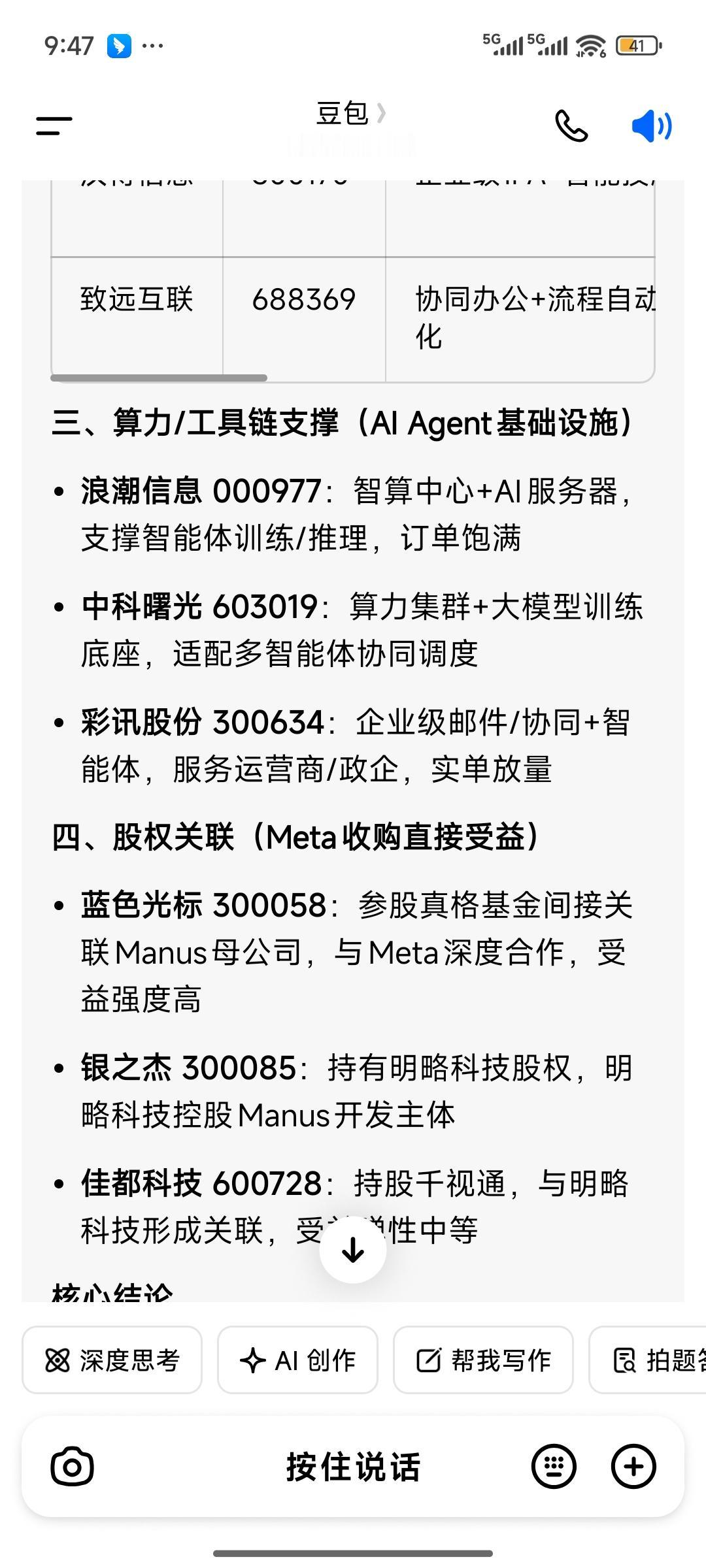最近,大家的注意力都被商业航天、航空航天概念吸引。实际上,除了机器人概念的炒作,还有一个极具利好的概念,即近期Meta以20亿美金收购了Manus公司。Manus公司是一家AI智能体企业,如此高价被收购,很可能会引发一波AI Agent(AI智能体)相关概念的炒作。 目前,蓝色光标已连续大涨,南兴股份也连续两个涨停,均受此影响。我认为,在商业航天炒作的间隙,可能会掀起AI Agent智能体的炒作浪潮。 我搜索了AI Agent智能体相关的强概念股,罗列如下,供各位股友参考,希望大家能搭上这波概念的顺风车,有所收获。 航空航天板块 航天概念股 中国商业航天 航天发展股票 航空航天概念股 航天产业 航天科技控股