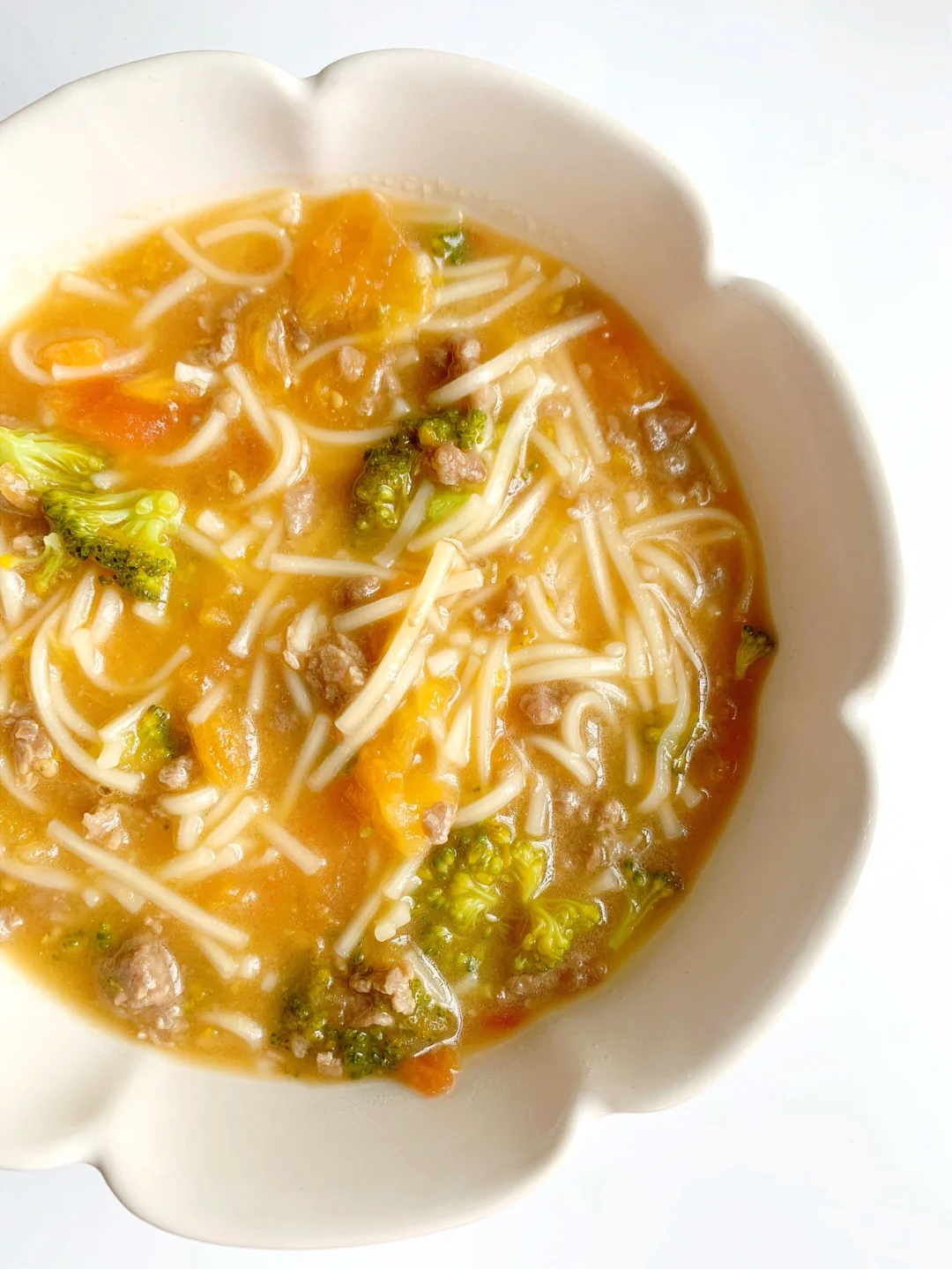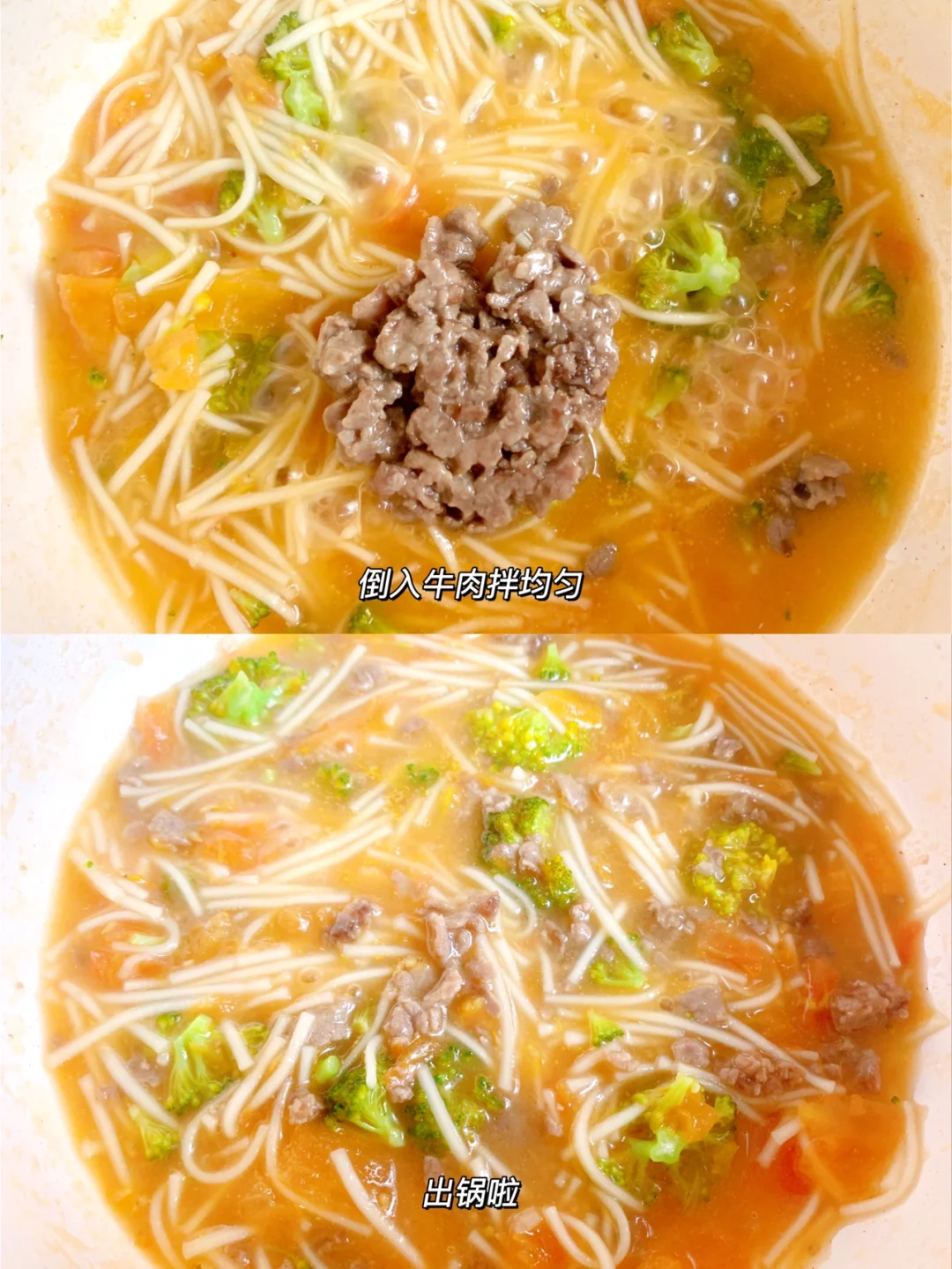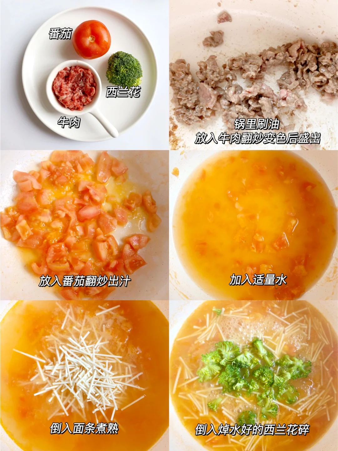 牛肉一定要多吃,补钙补铁,长高高 今天做的番茄牛肉面,营养丰富,爱吃面条的宝宝一定要试试[赞R][赞R] 可乐连汤都喝光光那种 ——— 🌟食材 番茄、牛肉、西兰花 . 🌟做法 1⃣️牛肉切碎用淀粉腌制,番茄切皮切碎 2⃣️锅里刷油,放入牛肉翻炒变色、盛出备用 3⃣️倒入番茄炒出汁,加入适量水,放入面条煮熟,放入牛肉和焯水好的西兰花碎即可 8个月宝宝辅食|9个月宝宝辅食|10个月宝宝辅食|一岁宝宝辅食 ❤️有什么问题可以在下方留言,看到都会回复,关注我带您解锁更多辅食制作…