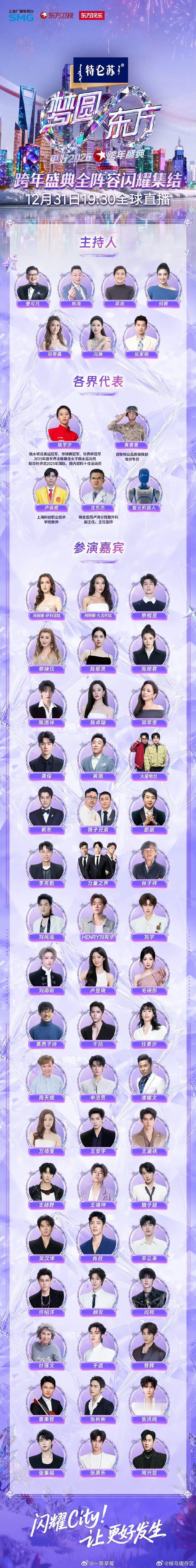 跨年晚会节目单顶流舞台:肖战压轴献唱《得闲谨制》《不要回头》《现在不跳舞要干嘛》《一路生花》四首歌曲,华晨宇零点前独唱《向阳而生》,王心凌青春串烧引爆回忆杀。