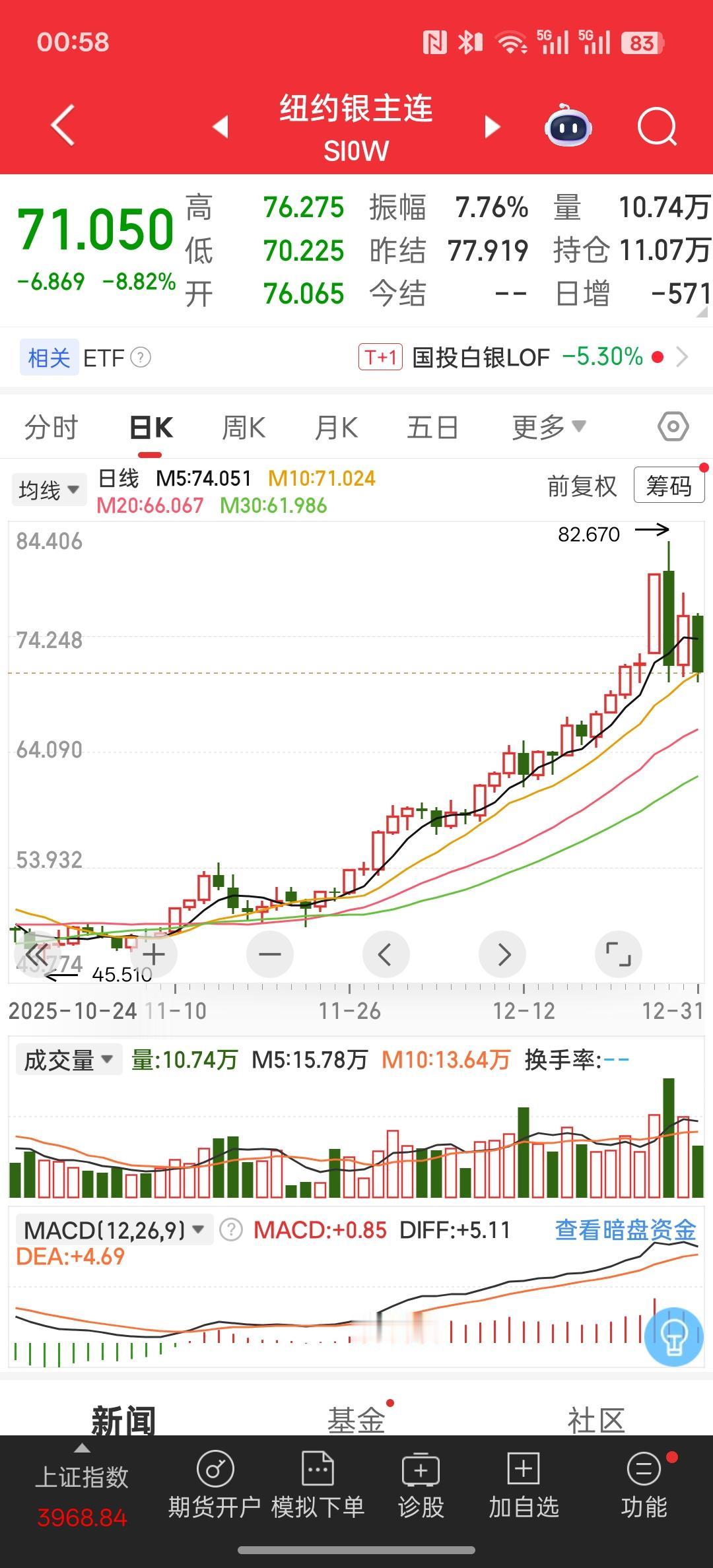 今晚白银板块继续大跌,白银交易期货市场保证继续加码,保证金的上调引发了纽约商品交易所大规模的交易和强制平仓!持续的下跌,很多人都会被强制平仓!贵重金属黄金白银。国内前段时间就大幅的提示风险,同样提高保证金,甚至国投白银就开始停牌了,立即限购,连定投全部限额!就是为了防止风险,防止杠杆投资加码!证明风险管控还是挺到位的!
