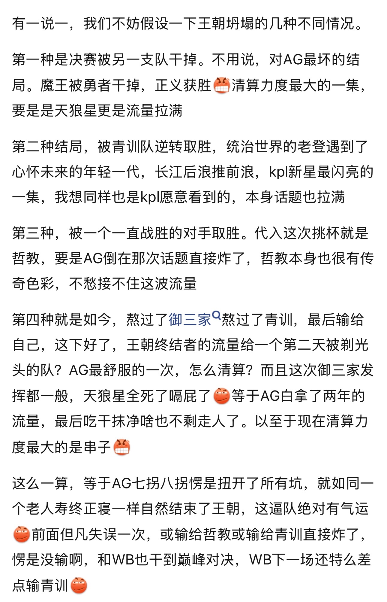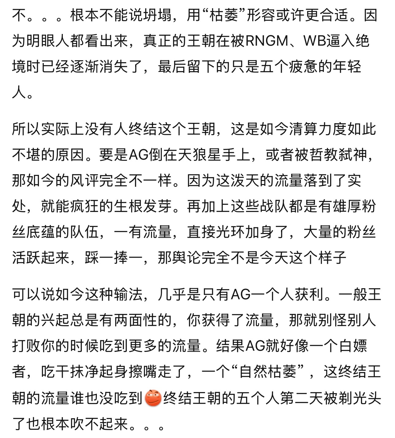 kpl突然发现对AG来说,王朝以这种方式结束,其实是最好的结局