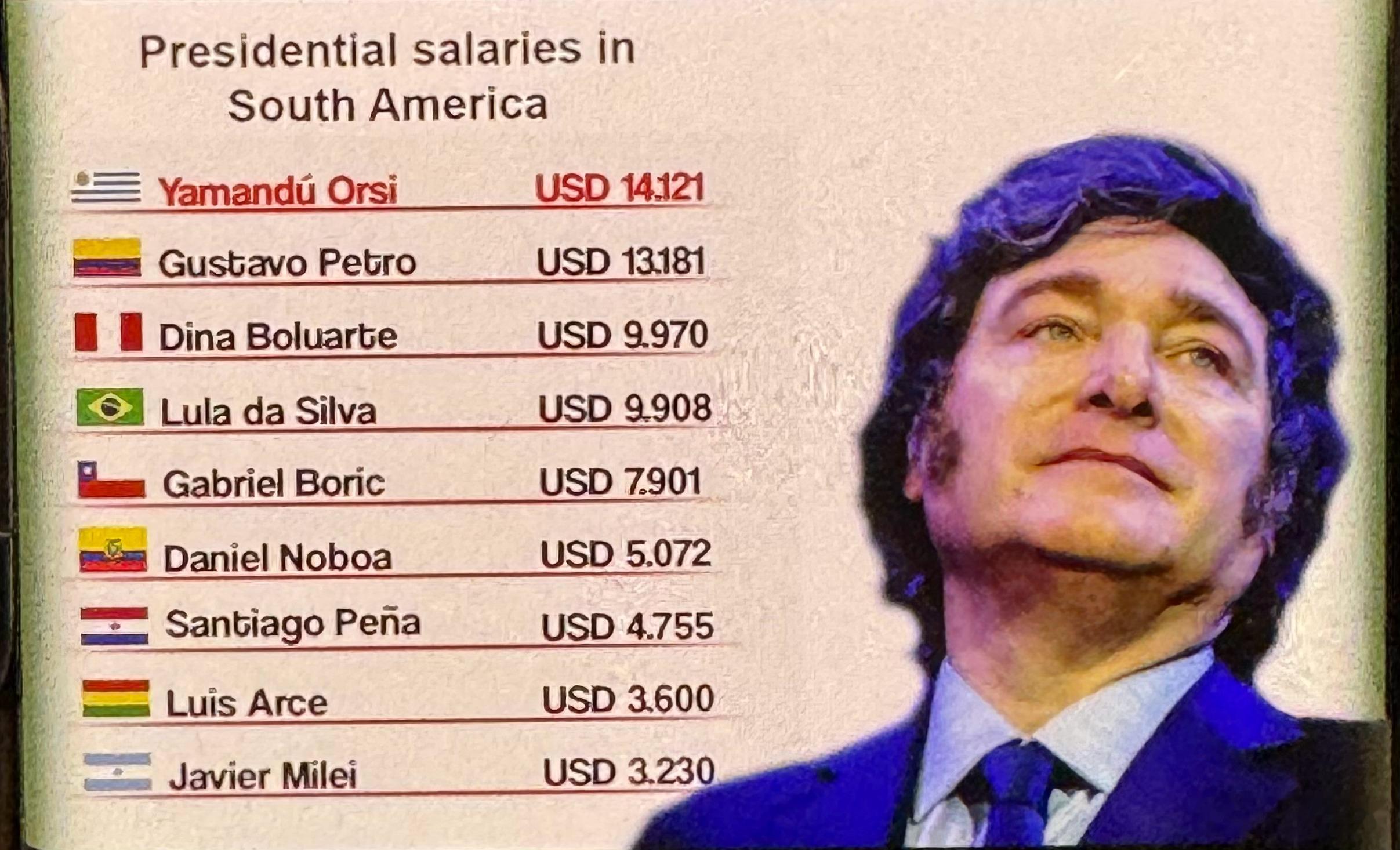 南美最低总统薪资!米莱月薪3230美元,用节俭扛住阿根廷经济危机🇦🇷!米莱微薄薪资彰显道德立场阿根廷总统米莱月薪仅3230美元,为南美地区最低。这一薪资差距凸显了米莱厉行节俭的执政理念,与他在阿根廷经济危机期间削减政府开支的承诺一脉相承。米莱这份微薄的收入,是其恪守财政紧缩政策的道德宣示,与其他领导人常规化的薪资待遇形成鲜明对比,也折射出各国领导层在执政理念上的分歧。消息来源: