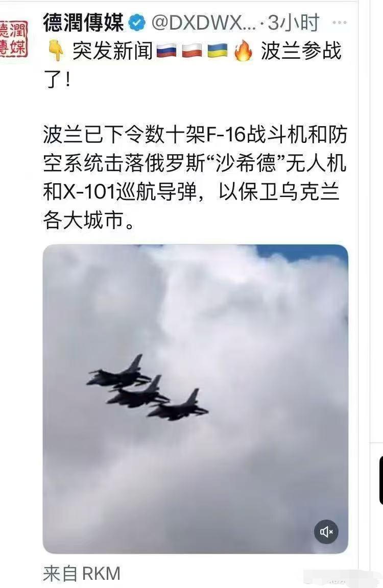 波兰不怕事大!这是参战了吗? 波兰出动F16战斗机和启动防空系统协助乌克兰防空。 俄军对乌远程打击,波兰武装部队作战司令部称F-16与防空、雷达系统启动,属预防性措施,无领空被侵犯,无击落行动。 雷兹佐夫和卢布林机场短暂关闭,后恢复; 多国协同(美、西班牙战机,荷兰防空系统), 行动顺利结束。 当日另一起为波罗的海国际空域拦截俄军侦察机,非无人机,未开火,仅目视识别并护送离开。 这是在试探俄罗斯的忍耐程度,历史上波兰曾被灭国是有原因的。