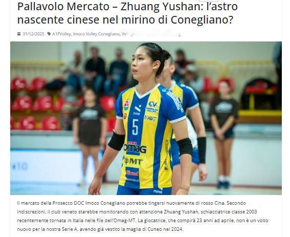 朱婷:100 万美元的高薪球员,有可能会被科内利亚诺放弃 科内利亚诺盯上了庄宇珊 意大利排球门户网站:庄玉珊:科内里亚诺瞄准的中国新星? 科内里亚诺的转会市场可能再次被"中国红"染色。据传,这家威尼斯俱乐部正密切关注 2003 年出生的小主攻庄玉珊,她最近回到意大利,加盟圣乔瓦尼。这位运动员将在四月迎来 23 岁生日,对于我们的 A1 联赛来说并不陌生,她曾在 2024 年计划效力库内奥。 在 2023 年 U21 世锦赛中,她以最有价值球员(MVP)和最佳主攻的身份崭露头角,当时中国队正是在决赛中战胜了意大利。 在最近的 VNL 比赛中,庄玉珊再次证明了自己的实力,以 225 分成为第三得分手。她一传出色,拦网稳固,这位来自福建的年轻明星无疑是接过同胞朱婷衣钵的理想人选。 如果这位亚洲明星球员的高额合同(根据一些消息,大约是一百万美元)没有续签,科内利亚诺可能会坚定地押注庄的潜力,以确保主攻位置在技术和魅力(东方市场 – 编者注)上的延续。