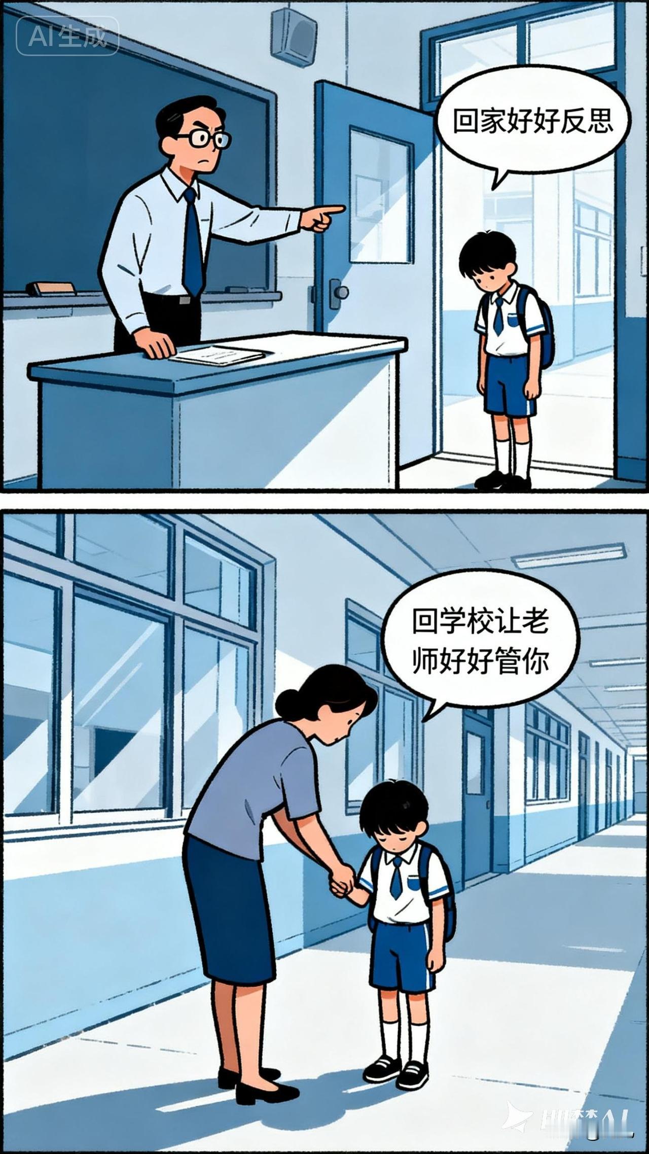 难管的学生 老师想推给家长管 家长想推给老师训 老师说在家好好反思 家长说不能耽误课 老师说来学校只玩闹 家长说送学校该老师管 推来送去 老师训了学生 学生不完成作业 老师无计可施 家长说课后服务费缴着 完不成作业怪谁 家长怨声载道 孩子笑了 原来谁拿他也没办法