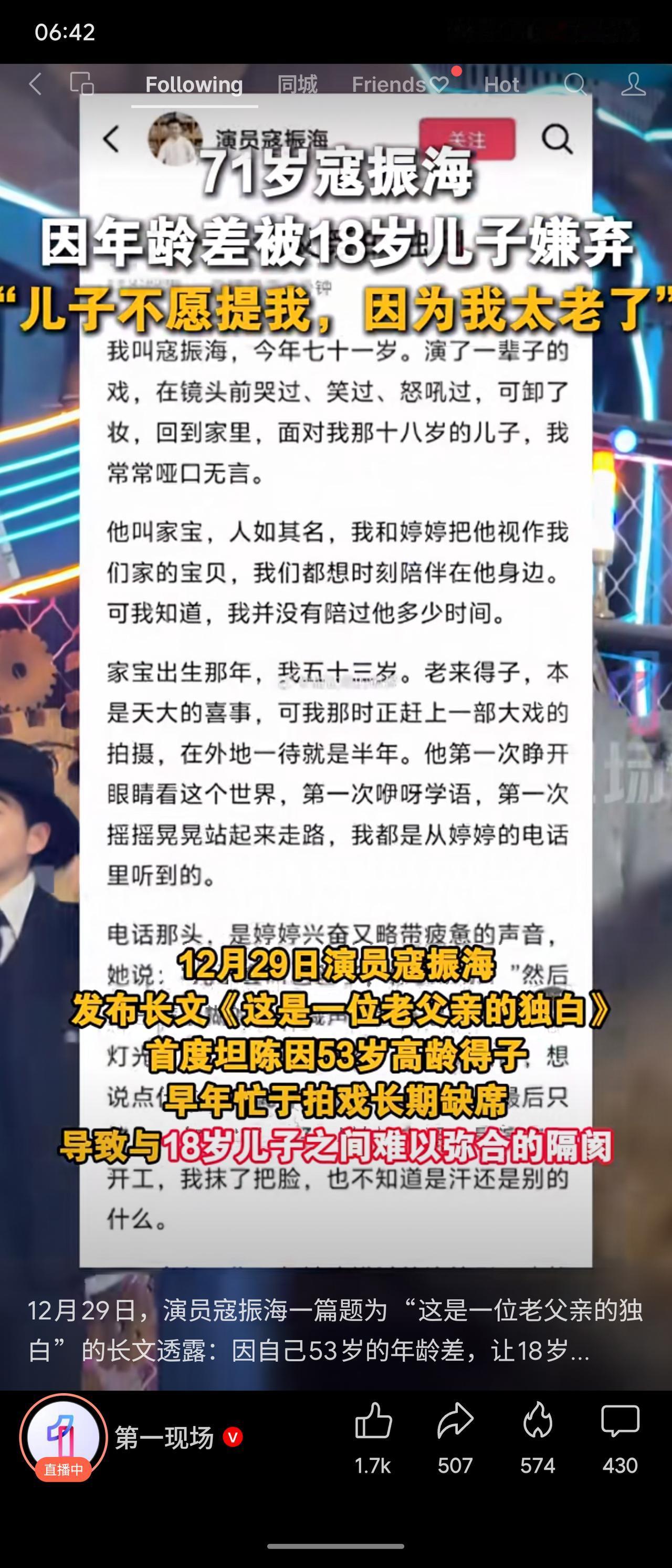 71岁演员寇振海(代表作《情深深雨濛濛》)近日透露,因与18岁儿子相差53岁,儿子不愿提及父亲,嫌其年龄太大。此事引发公众对高龄得子家庭亲子关系与代沟问题的关注。