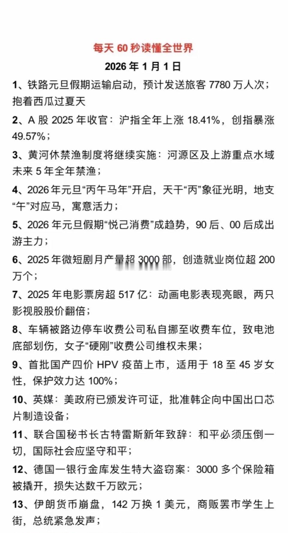 1.1周四 最新:国内外财经新闻!每天60秒感知全世界!