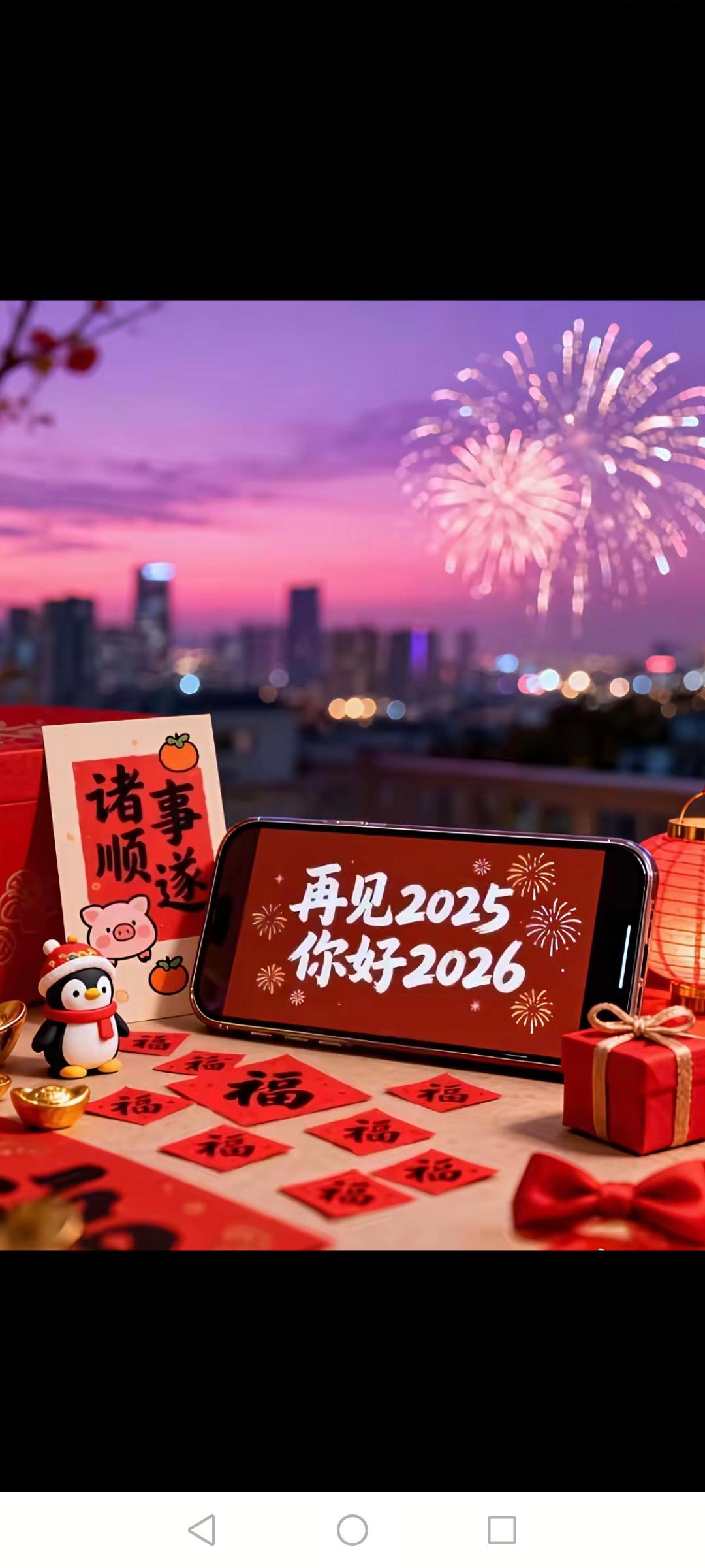 2025:再见! 2026:您好! 去岁千般皆如意 新年万事定称心 祝大家元旦快乐,新的一年,家人安康,工作顺心,心中无忧,卡里有钱,平安健康!