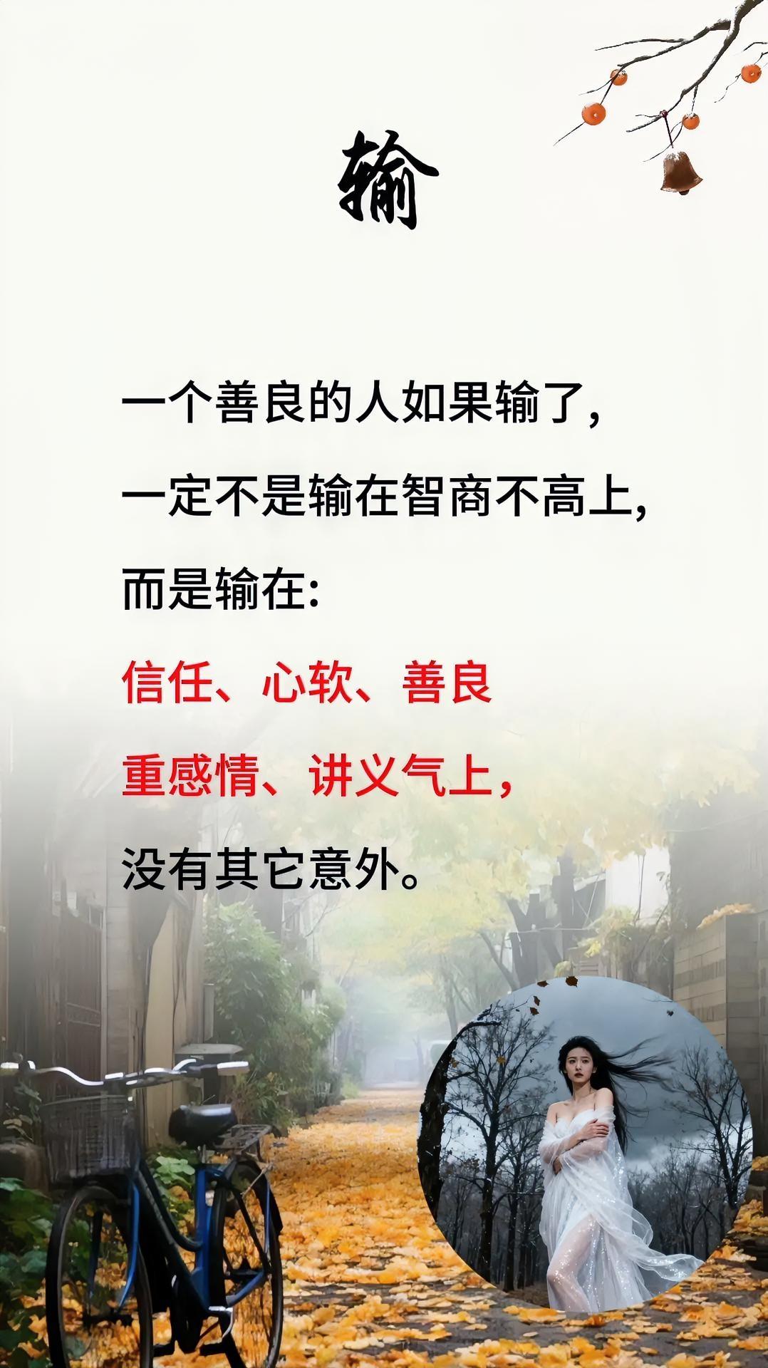2025年是我最伤心的一年,也是最狼狈不堪回首的一年,被“善良”欺骗了,被人践踏了我的善良,因太善良了,才会被人刺破善良的底线,狠狠地踩在脚下! 从此以后不相信善良,它带给我的只有无穷无尽的痛苦,但我也不会出卖善良,践踏善良,我只把我自己的“善良”藏起来,藏在…… 善良 很善良的后果 太善良是一种病 尽管你善良 无条件善良 善良真的好吗? 每天一句生活感悟