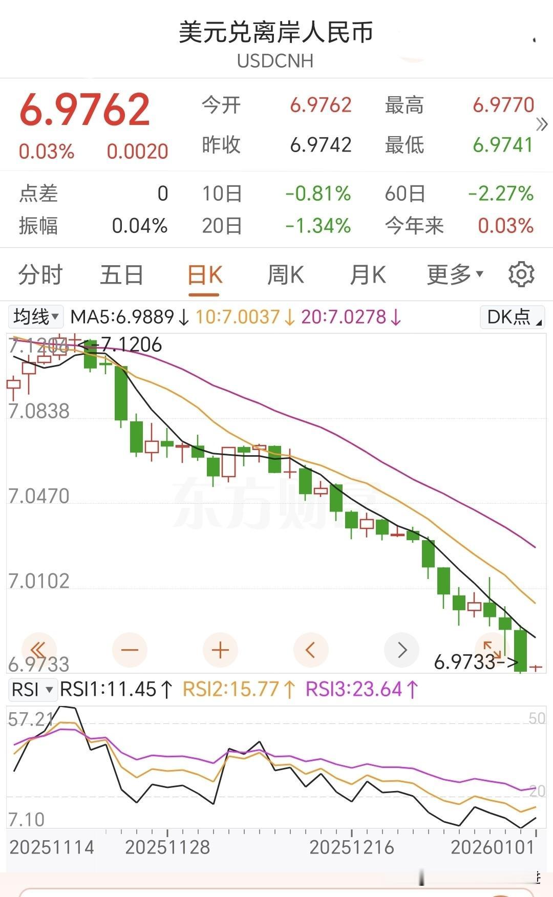 进入2026年,人民币兑换美元继续升值;黄金的则继续下跌。 美元下跌,用人民币在国际上可以买到更多的东西,但对依赖出口企业,则不利,也就是东西卖贵。 总之,人民币升值对国家层面来说,有利也有弊。