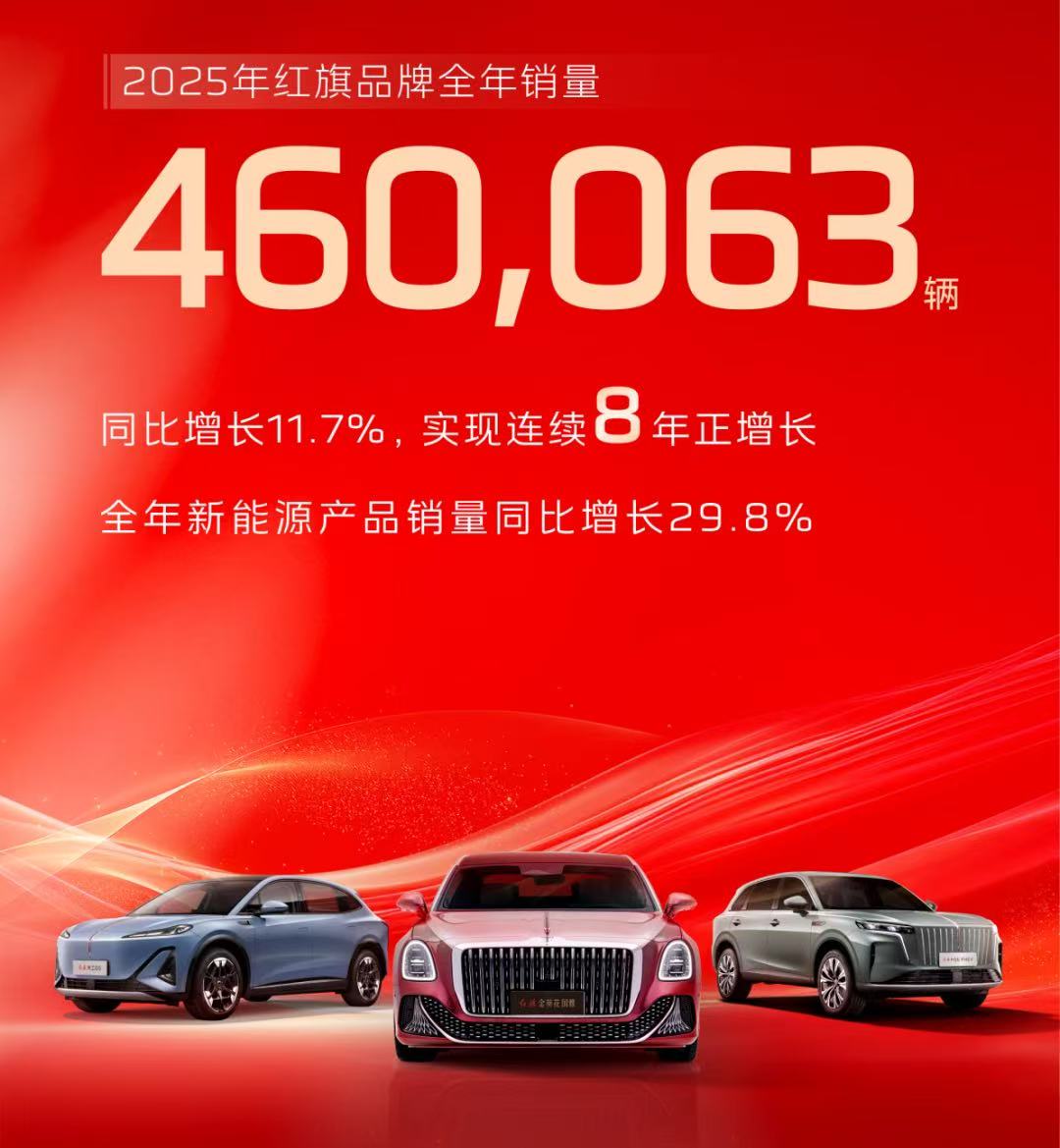 同比增长11.7%,一汽红旗2025年销量突破46万辆