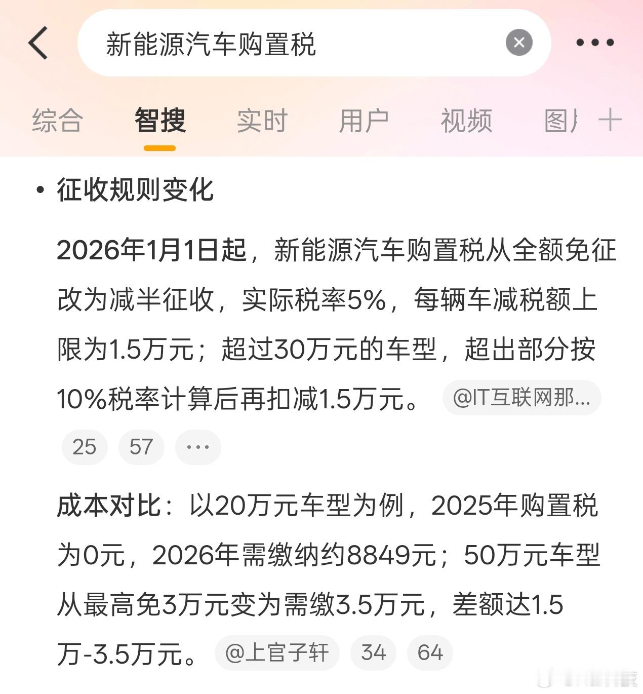 今年新规与大家买车息息相关的就是正式收取新能源汽车购置税,减半征收购车成本会有比较明显的抬升。消费者观望的状态可能会加深,汽车厂家的策略估计也在这几天陆续出台来对冲,2026年注定是不平凡的一年!2026年新规今起施行