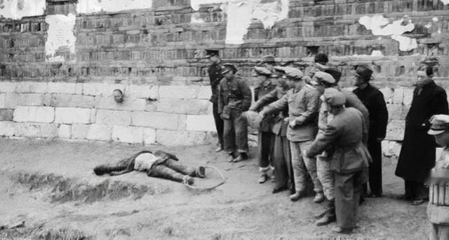 1948年,上海刑场,新四军苏浙游击纵队的全体成员。被残忍杀害后,一张罕见的留影,从镜头中我们可以看到,几名国民党的官兵围在一起,议论纷纷,不远处的城墙上还挂着一颗血淋淋的头颅,而这颗头颅正是副司令兼参谋长汤景延的遗首。 刑场的风,裹挟着荒草的苦涩与灰烬的焦灼,掠过泥泞的地面。三十余名战士被绳索紧缚的手臂,在夜色中勾勒出扭曲的弧线,衣衫撕裂处,血痕未干的肌肤上,凝固着五天五夜激战的痛楚。他们刚从奉贤水域的突围中败下阵来,负伤的躯体被敌人粗暴地拖拽至此,等待他们的,是冰冷的枪口与无情的审判。 汤景延,这位曾经的通海自卫团团长,此刻走在队伍的最后。他的腿上有枪伤,每一步都踏得踉跄,但脊背却挺得笔直,仿佛一座不屈的山峰。1943年,他率部投伪,实则是中共特别党员的深入敌营之举。在协记公行的掩护下,他运粮送信、刺杀特务、传递清乡情报,每一步都走在刀尖上,却最终全身而退,完成了震惊敌我的汤团行动。此后,他策反伪军、组建海防力量,一路南下浙西,再入上海,每一步都踏着血与火的印记,书写着属于自己的传奇。 然而,此刻的他,却站在了刑场的边缘。他的眼神中,没有恐惧,没有绝望,只有坚定与不屈。他知道,自己的生命即将走到尽头,但他的信仰,他的精神,将永远镌刻在这片土地上。他用自己的行动,诠释了什么是真正的忠诚与勇敢,什么是真正的共产党人。 刑场上的风,似乎更加猛烈了,它吹散了荒草的苦涩,却吹不散战士们心中的信念与坚持。他们虽然倒下了,但他们的精神,将永远屹立不倒,成为后来者前行的灯塔与指引。5月14日清晨,枪声骤然撕裂寂静,士兵应声倒下,鲜血迅速渗入脚下的土地。行刑者面无表情,割下汤景延的头颅,用粗麻绳穿耳,将其悬挂在城墙之上。那颗头颅闭着眼,脸颊瘦削,血顺着脖颈断口缓缓滴落,在斑驳的砖墙上画出暗红的沟痕。 不远处,几名国民党官兵围立,交头接耳,有的低头看表,有的指着头颅议论纷纷,仿佛这一切不过是一场无关紧要的戏码。一张照片定格了这一刻,半圆形的人影,背后是斑驳的城墙与那一颗孤悬的头,冷峻而刺眼。民团成员站在更远处观望,弹壳散落一地,无声地诉说着刚刚发生的暴行。 汤景延的战士遗体被弃于荒野,无人问津,而他的头颅则被悬挂数日,作为对叛逆者的示众与警告。苏浙游击纵队全员牺牲,他们未竟的任务,随着生命的消逝而终止。然而,这场血腥的镇压并未能抹去历史的痕迹,那张罕见的影像留存下来,成为1948年那个深秋最沉默却最有力的证言。 汤景延,一个曾经的地主之子,是何种力量驱使他走向了信仰的尽头,甘愿为理想献出生命?他的转变,并非一蹴而就,而是在时代的洪流中,逐渐看清了社会的真相,选择了与旧世界决裂。他的斗争,是个人的抗争,更是一代人对自由、平等、正义的追求。然而,这段斗争最终在血色中沉寂,留下的除了悲痛与遗憾,还有对未来的深思与警醒。 这张照片,不仅记录了一个生命的消逝,更见证了一个时代的变迁。它让我们思考,何为信仰?何为牺牲?在历史的洪流中,个体命运如何与时代紧密相连?汤景延的故事,虽已远去,但他所代表的精神与追求,却永远值得我们铭记与反思。