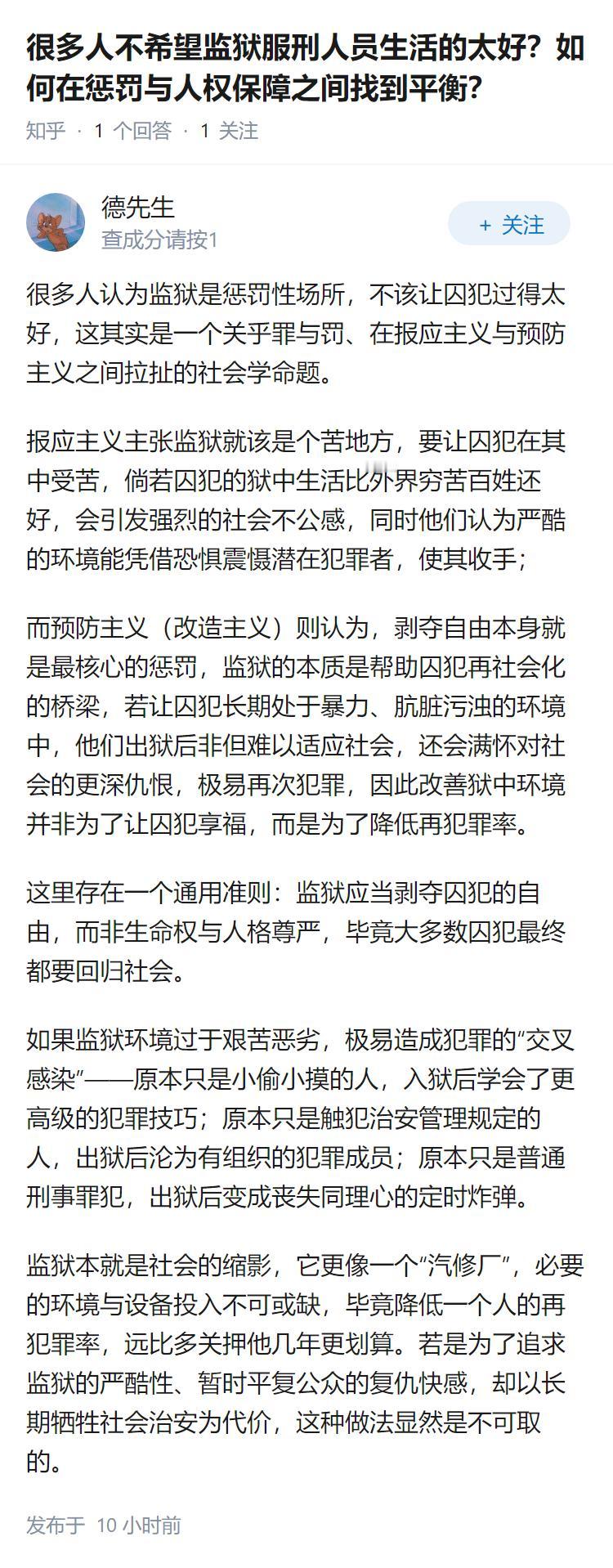 很多人不希望监狱服刑人员生活的太好?如何在惩罚与人权保障之间找到平衡?