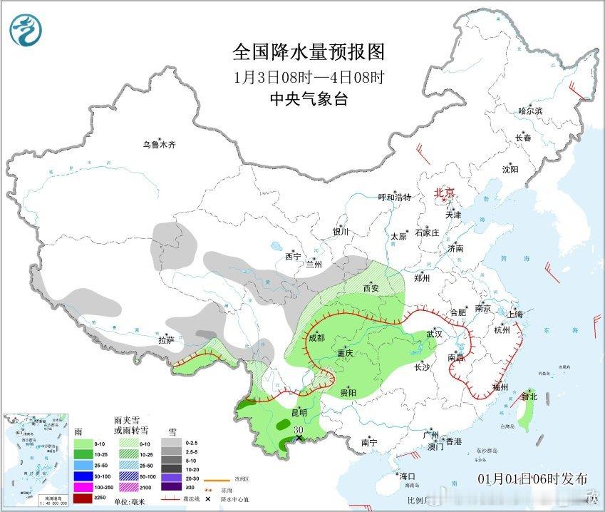 【雨雪】昨天到今晨,跨年雨雪过程发展加强达到鼎盛阶段。陕西河南湖北部分出现出现大雪-暴雪。河南鸡公山出现大暴雪。今晨8时积雪,陕西宜君16厘米、河南鸡公山14厘米、鲁山12厘米、湖北谷城10厘米。大城市中,西安昨天白天,南京今天凌晨,均迎来今冬初雪。郑州合肥也出现降雪。今天雨雪总体收敛。安徽南部、江苏南部和浙江西北部一带还有降雪。杭州处于雨雪临界。杭州自己预报了雨夹雪。另外今后三天,西南地区因为暖湿气流源源不断北上,频繁出现降水。而且2-3日暖湿气流向北脉动,甘肃东南部、宁夏南部、陕西中南部还有降雪。西安在3日还有机会下雪。