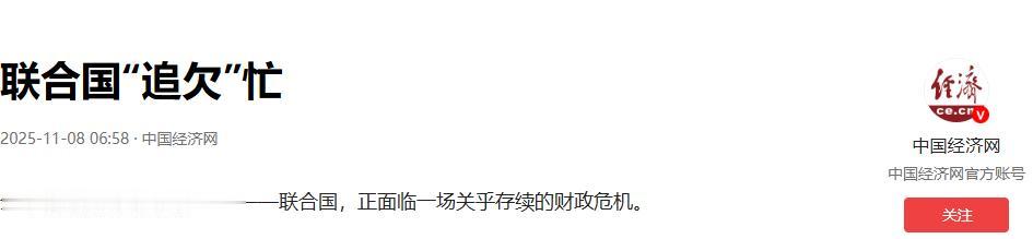 还想让中国当冤大头?对不起,中国没这个义务! 当地时间12月23日深夜,联合国官网突然挂出一则紧急通告,字里行间全是焦虑。通告里明明白白写着,2025年常规预算已经出现18.7亿美元的窟窿,维和账户更是直接见底,非洲维和部队连买燃油的钱都得赊账,秘书长发言人迪雅里克甚至当众坦言,要是再收不上钱,明年3月就得停发部分员工工资。 这则通告一出,西方媒体的镜头没对准欠费大户,反倒齐刷刷聚焦中国。 全球最大的国际组织正闹钱荒,这事说出来都让人不敢信。联合国深夜发的紧急通告,把财政上的窘迫摆得明明白白,常规预算填不上坑,维和部队更是难到要赊账买油,连员工工资都快发不出来了。 按说这种时候,大家该盯着那些欠缴会费的国家才对,可西方媒体的操作却让人看不懂,镜头齐刷刷对准中国,那意思仿佛在说,这事就得中国来兜底。 先把事儿捋清楚,联合国的钱不是凭空来的,靠的是会员国按规矩缴会费。核心原则很简单,就是看各国的经济实力,实力强就多承担点,这本身是挺合理的设计。可问题出在执行上,总有国家把缴会费当成选择题,高兴了就交,不高兴就拖着,其中欠得最多的就是美国。 说出来可能没人信,作为全球头号经济体,美国欠联合国的钱早就不是小数目了。算上往年的欠款和没缴的维和经费,总金额已经超过30亿美元,几乎抵得上联合国一整年的常规预算。 更让人无语的是,美国不是拿不出这笔钱,它一年的军费都快突破9000亿美元了,给别的国家搞军事援助动辄就是几十亿,可到了该缴的会费这里,就开始找各种借口拖延,甚至一分钱都不缴。 反观中国,作为第二大会费分摊国,从来没拖欠过一分钱,2025年的会费早就全额缴清了。联合国发言人都特意致谢,说这笔钱在财政紧张的时候至关重要。 要知道,中国的会费分摊比例这些年涨得很快,二十多年里翻了近二十倍,这背后是中国经济实力的提升,也是中国在认真履行自己的国际义务。 可履行义务不代表要当冤大头。中国虽然经济总量大,但人均水平还没追上发达国家,按道理不该承担这么高比例的会费。更关键的是,有些发达国家的分摊比例一直在降,原本该由它们承担的负担,慢慢转移到了包括中国在内的发展中国家身上。 即便如此,中国还是按时缴费,就是因为认可联合国的作用,愿意为多边主义出力,但这绝不意味着中国要包揽所有问题。 西方媒体故意忽略美国这个最大欠费户,转而盯着中国,说白了就是双标。它们心里清楚,美国惹不起,就想逼着中国多掏钱,把中国当成解决问题的“提款机”。可这种算盘打错了,中国的责任和义务是有边界的,该出的钱一分不少,不该扛的锅也绝不会接。 更值得琢磨的是,联合国的财政危机,表面是钱的问题,深层是制度的漏洞。这个国际组织既不能自己筹钱,也没法对欠费国家实施有效的制裁,就算有相关规定,执行起来也打了折扣。 有些国家就抓住这点,把拖欠会费当成施压的工具,高兴了就用经费卡联合国的脖子,逼着联合国按自己的意愿做事,这种扭曲的机制不改变,财政危机迟早还会发生。 中国一直支持联合国改革,也愿意为维护联合国的正常运转出力,但这种支持是有前提的,那就是公平公正。 不能因为中国愿意承担责任,就把所有压力都堆过来,更不能让不履行义务的国家逍遥法外。西方媒体想把话题引到中国身上,转移大家对真正问题的关注,这种小伎俩根本站不住脚。 说到底,解决联合国的财政危机,关键不是让中国多掏钱,而是让那些欠费大国正视自己的义务,把该缴的钱补上。 同时,也得完善联合国的财政制度,让缴费变成硬性约束,而不是可松可紧的选择题。中国从来都是负责任的大国,可负责任不代表要当冤大头,更不代表要为别人的失职买单。 现在的问题摆在眼前,是继续放任某些国家拖欠会费,让联合国陷入更大的危机,还是建立更公平的机制,让所有国家都履行义务?西方媒体与其盯着中国喊口号,不如多问问那些欠费大国,什么时候才能把欠的钱补上。 大家觉得,该怎么让联合国的财政走上正轨?那些长期欠费的国家,又该受到怎样的约束?