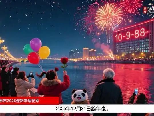 12月31日跨年夜,吉林市松花江畔上演了一场璀璨的烟花秀。江畔人潮涌动、热闹非凡,一朵朵绚烂的烟花在夜空中次第绽放,点亮了城市的跨年之夜。松花江放烟花