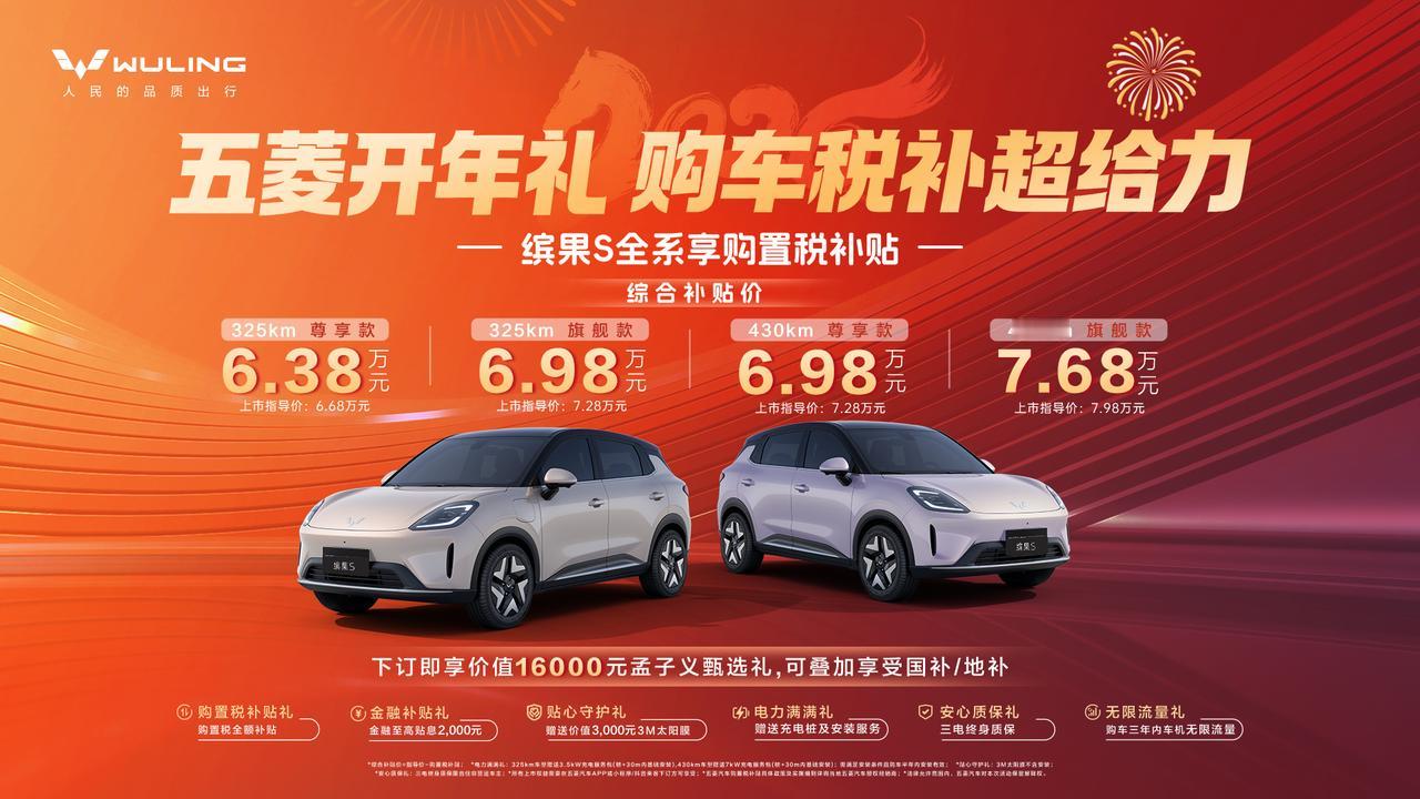 五菱新年补贴太给力!新年买车选它你可省多了。 新年想入手小车的朋友注意,这次五菱可是真放大招了,旗下缤果家族、宏光MINIEV全系享购置税全额补贴(补减半后剩余部分),在国家新能源购置税补贴减半的政策变化下,直接帮你补贴,让你又省下一笔。​ 不仅如此,像近期卖的很火的缤果S,在6.68万起售价基础上享受购置税全额补贴,同时还有至高贴息2000元、赠送太阳膜、三电终身质保等福利,这就让它比星愿、海鸥入手门槛更低。更关键的是,它的产品力出色,430km的续航表现领先同级,冬季低温环境下也能放心跑远路。更难得的是它能给到手机APP远程控空调+座椅加热,可提前预热车厢,还有外后视镜加热、DeepSeek语音大模型,不用冻手触屏,语音就能搞定导航、调空调,甚至聊天、解疑答惑,这些实用配置在星愿、海鸥上大多缺失。​除此之外,50W无线快充、LED大灯、定速巡航等配置也都是入门就有。 此外,你如果考虑缤果或宏光MINIEV也都还有其他相应政策。比如说前者给你送价值950元的交强险、至高5000元的置换补贴;后者给到至高4000元无门槛超级置换补贴,还送三电质保、3.5kW充电桩等等。 所以不管是预算六七万的,还是三四万的,新年选购代步车不要错过五菱这波政策补贴就对了。