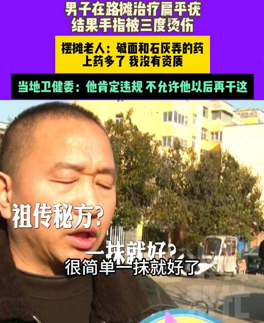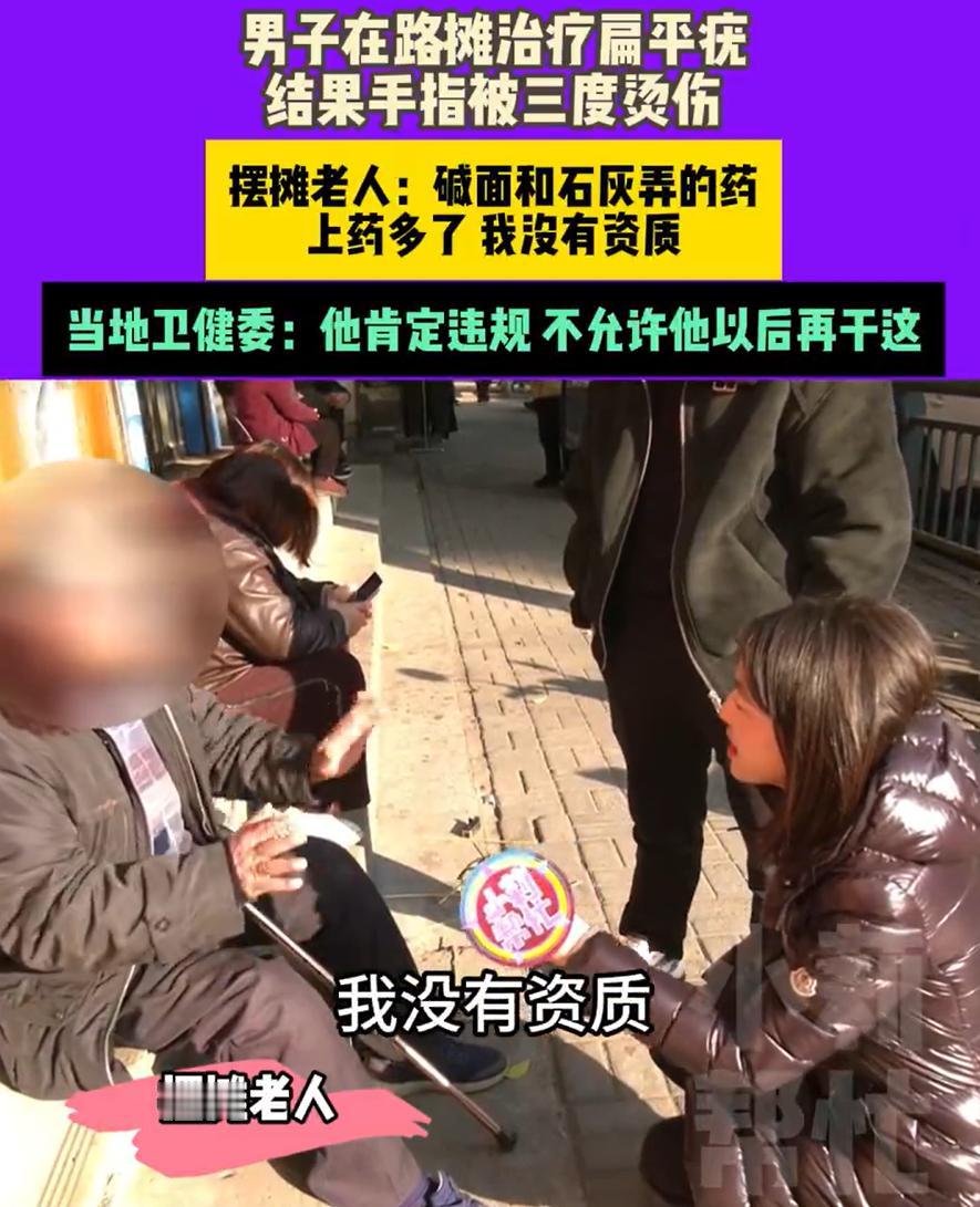 这心真不是一般的大!河南洛阳,一位爸爸发现孩子手上长了扁平疣,本来去医院治疗就可以了,可爸爸却带着孩子到路边摊找了个老人看病,结果孩子手指被三度烧伤,爸爸想要找摊主负责,对方却表示:我就是个摆摊的!你非要治的! 本来不算什么大病,医院皮肤科很常见,可父亲嫌麻烦、嫌贵,也可能是图个快,带着孩子去了路边摊。摆摊的是个老人,说自己有祖传办法,抹一抹就好,不留疤,价钱也不贵,110块钱搞定 钱交了,治疗方式却让人后背发凉。老人直接用刀在孩子手指上割划,再抹药,说当天就会掉。结果一下午过去,啥变化都没有。老人一句再等等,把人打发走了。二十天过去,疣没掉,孩子的手还是老样子。家长又找上门,老人又给上了一次药,保证这次肯定行 真正的噩梦就是从这次开始的。药一抹上,孩子疼得睡不着觉,天天喊疼,手指一点点发黑,像被什么东西腐蚀了一样。撑了三四天,父亲终于慌了,赶紧带孩子去医院。医生一看就直说,这是化学原料造成的烧伤,还是三度。疤好了,手指也很难完全伸直,用力捏东西会疼,后遗症基本是躲不开的 这时候再回头找路边摊,老人承认是自己用药多了,说的是硫酸石灰,愿意出医药费,又补一句,我没资质,我就是摆摊的,你非要治,我也没办法。听着像道歉,又像推责任。最终,相关部门介入,把老人的摊子和东西都收走了 说实话,这件事里,最让人难受的不是那110块钱,也不是一句没资质,而是孩子付出的代价。扁平疣这种问题,说白了就是皮肤病,正规医院有明确流程,有药、有冷冻、有激光,哪怕不治,也有观察方案。偏偏因为轻信偏方,孩子直接从小毛病变成了终身隐患 很多家长可能会代入自己,觉得这种事离自己不远。路边摊、祖传秘方、见效快、还便宜,这些词对着孩子的病,很容易击中人心。不是父母不爱孩子,而是低估了风险。可医疗这件事,一旦走偏,代价往往不是钱能补回来的 这事也给了一个很现实的提醒。不是所有便宜都值得占,也不是所有老经验都可靠。尤其是涉及孩子身体的事,哪怕多跑一次医院,多挂一次号,至少底线是安全。路边摊治病,本身就不该存在,出事后一句我没资质,其实什么都解决不了