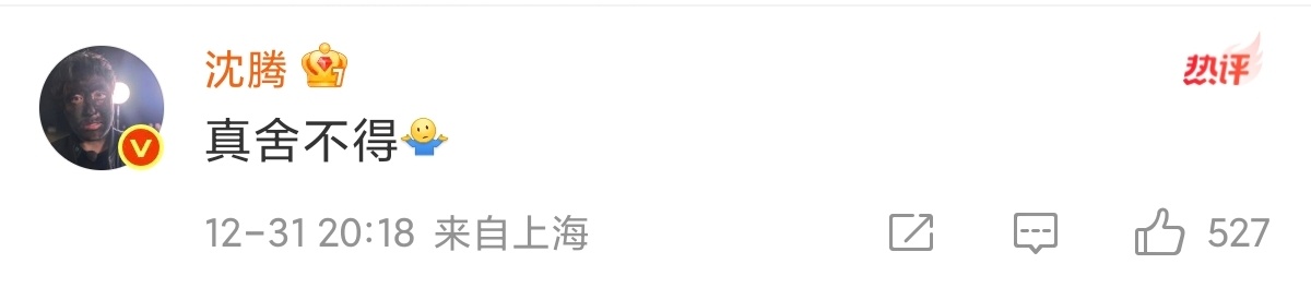 【沈腾回应流浪地球3杀青】沈腾回复郭帆导演晒蛋糕图祝贺《流浪地球3》杀青,配文“话不说绝 要严谨”,蛋糕上也写着“恭喜腾哥基本上应该是大爱不差杀青”,随后,腾哥回复道,“真舍不得”。《流浪地球3》已定档2027大年初一,你期待吗?