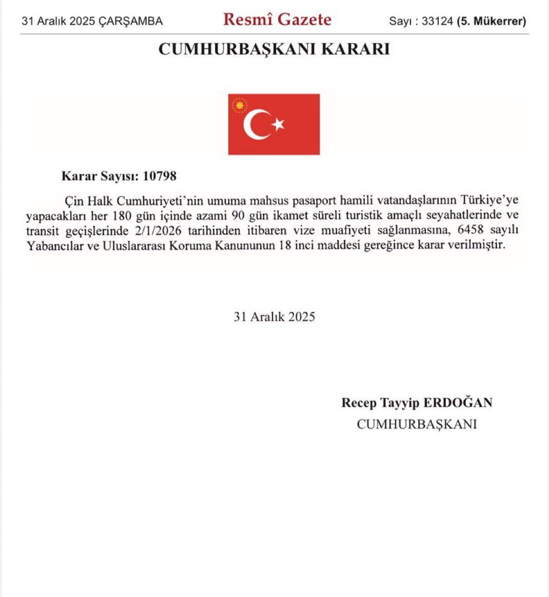 2025年最后一天晚上的深夜,土耳其可谓是突然对中国发大招,埃尔多安正式签署总统令,决定自2026年1月2日起,为中国持普通护照的公民前往土耳其实行免签,每180天内最多停留90天。那么,土耳其为何做出这样的决定呢? 旅游业早已是土耳其经济的核心支柱之一,该产业占全国GDP比重超13%,直接和间接支撑着数百万个就业岗位。2024年,土耳其旅游业创收611亿美元,接待外国游客5260万人次,这份收入对缓解国内经济压力至关重要。更关键的是,中国游客群体正成为土耳其旅游业的潜力股。 2024年,中国赴土游客数量达40.97万人次,较2023年的24.81万人次增长65%,2025年前九个月访土中国游客已达31.38万人次,几乎追平2023年全年水平。 中国游客的消费能力更让土耳其格外看重。数据显示,中国游客人均消费近1000美元,这一水平远超欧美游客的平均消费。在卡帕多奇亚的热气球体验、圣索菲亚大教堂的文化探访,还有土耳其陶瓷、天然精油等特色商品的采购,中国游客的消费覆盖旅游产业链多个环节。 埃尔多安政府显然清楚,免签政策将大幅降低中国游客的出行门槛,此前签证申请的费用、材料准备的繁琐流程,都是不少中国游客放弃土耳其的重要原因。 签证政策的调整,同样藏着土耳其的区域竞争考量。近年来,俄罗斯、阿联酋等周边国家纷纷对中国游客放宽签证政策,争抢这一庞大客源市场。 土耳其地处欧亚大陆交汇处,一直试图巩固自身“欧亚中转枢纽”的地位。在周边国家纷纷释放便利信号的背景下,土耳其若不跟进,很可能错失大量中国游客,甚至影响中转旅客的停留意愿。 交通配套的完善,为免签政策落地提供了基础支撑。2025年5月起,中土之间的每周航班数已从21班大幅提升至49班,这是近15年来首次大规模扩容。 土耳其航空还新增了北京、上海的直飞航班,运力提升22%,多家中国航空公司也在洽谈开通新航线。航班密度的增加让两国人员往来更便捷,免签政策与航空运力的协同,能最大化激发旅游需求。 经贸联动的需求,进一步推动了免签政策的落地。2024年,中土双边贸易额达到483亿美元,中国已跃升为土耳其第二大贸易伙伴。 2025年上半年,双边贸易额继续攀升,同比增长11.13%。中国企业在土耳其的投资布局也在加速,比亚迪已计划投资10亿美元在土建厂,广汽等企业的合作谈判也在推进中。 免签政策能显著降低双方人员往来成本,便利企业高管考察、商务团队洽谈,为更多合作项目的落地铺路。 跨境电商领域的合作升温更需要人员密切互动,当前土耳其蜂蜜、橄榄油等商品对华出口额年增89%,人员往来的便利将进一步激活这一市场潜力。 外交维度的考量,为这次免签政策增添了更深厚的内涵。2026年是中土建交55周年,免签政策的推出无疑是两国深化关系的重要信号。 土耳其是最早与中国签署“一带一路”合作文件的国家之一,其“中间走廊”计划与“一带一路”倡议高度契合,双方在基建领域的合作项目已超20个。 通过签证便利化深化人文交流,能为两国战略对接营造更良好的氛围。中国驻土耳其大使姜学斌此前就强调,旅游业合作正成为中土关系中的闪光点。 双方已签署旅游合作谅解备忘录,在在线宣传、文化演出等方面推进合作,免签政策将让这些合作落地更高效。 土耳其国内的经济压力也让这次政策调整显得更为迫切。2025年,土耳其纺织业遭遇重创,已有300多家纺织和成衣企业申请破产保护,过去两年相关行业就业岗位减少超30万个。 纺织业出口的疲软让土耳其更依赖旅游业的外汇收入。同时,国内通胀率平均高达60%,里拉持续贬值,失业率升至9%,旅游业的稳定增长成为缓解经济困境的重要抓手。 社交媒体上的热度也让土耳其看到了契机。2024年,抖音平台土耳其旅行 话题播放量突破218亿次,卡帕多奇亚的热气球、帕穆克卡莱的棉花堡成为中国网友追捧的网红景点。 土耳其旅游部门早已通过网络红人合作、旅游平台协作等方式在中国市场推广,免签政策将让这种线上热度快速转化为实际的旅游消费。 综合来看,土耳其的免签决定绝非临时起意。它是基于旅游业发展需求、区域竞争压力、经贸合作诉求和外交关系深化的多重考量,是一次经过深思熟虑的战略布局。 对中国游客而言,这意味着多了一个“说走就走”的异域目的地;对两国而言,这扇便利之门的打开,将让人文交流与经贸合作迎来更广阔的空间。