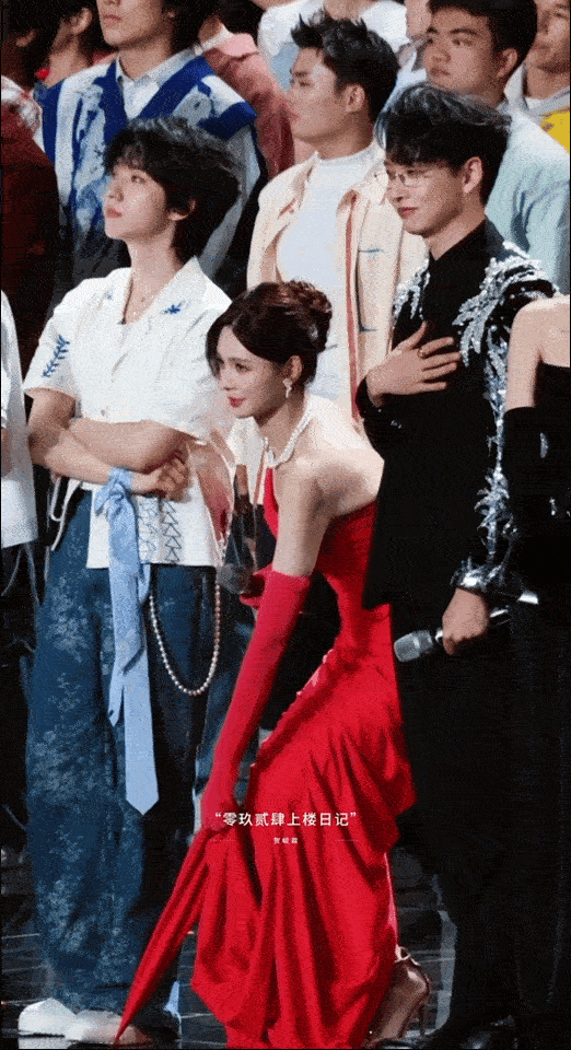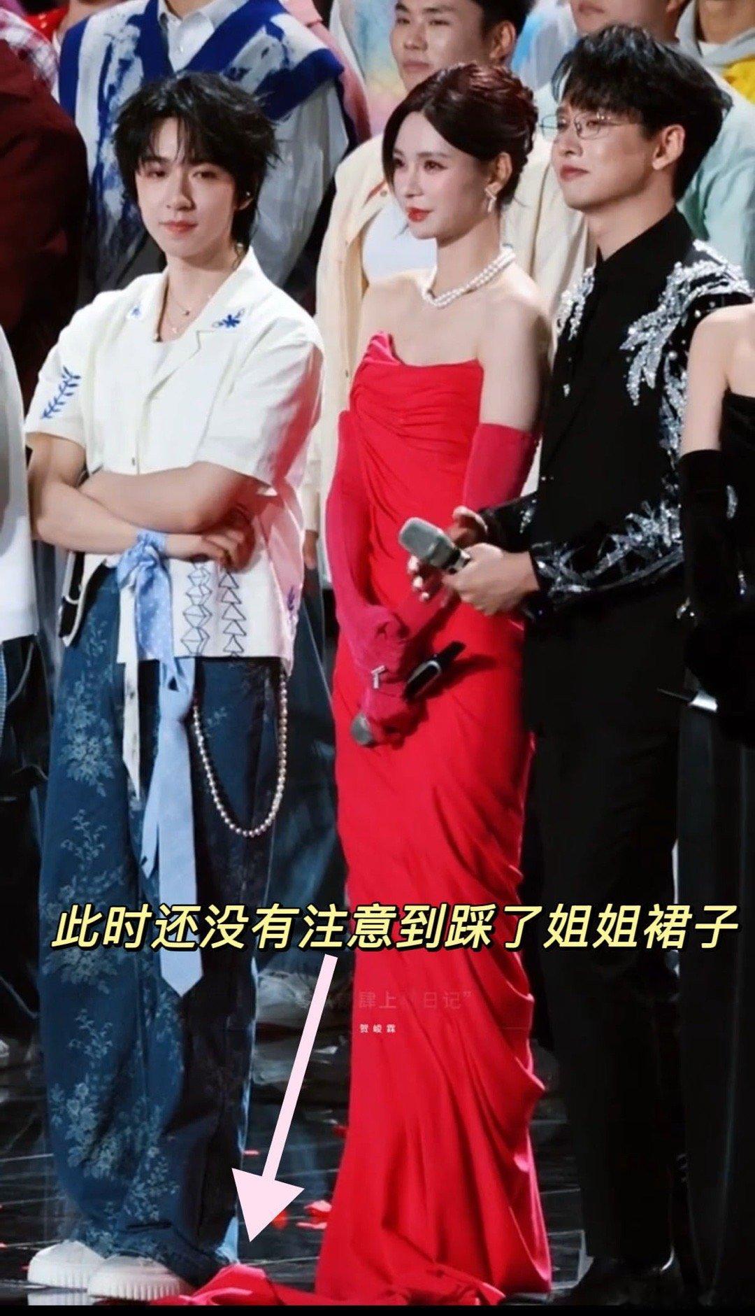 贺峻霖踩到沈梦辰裙子了 贺峻霖踩到了沈梦辰裙子还浑然不觉,沈梦辰拽裙子的小动作像极了上课偷偷捡笔的我!两位一个懵懂踩雷,一个暗自发力,这无伤大雅的舞台“事故”倒演成了当晚最自然的喜剧小插曲。自己的裙子自己守护,孟姐威武!