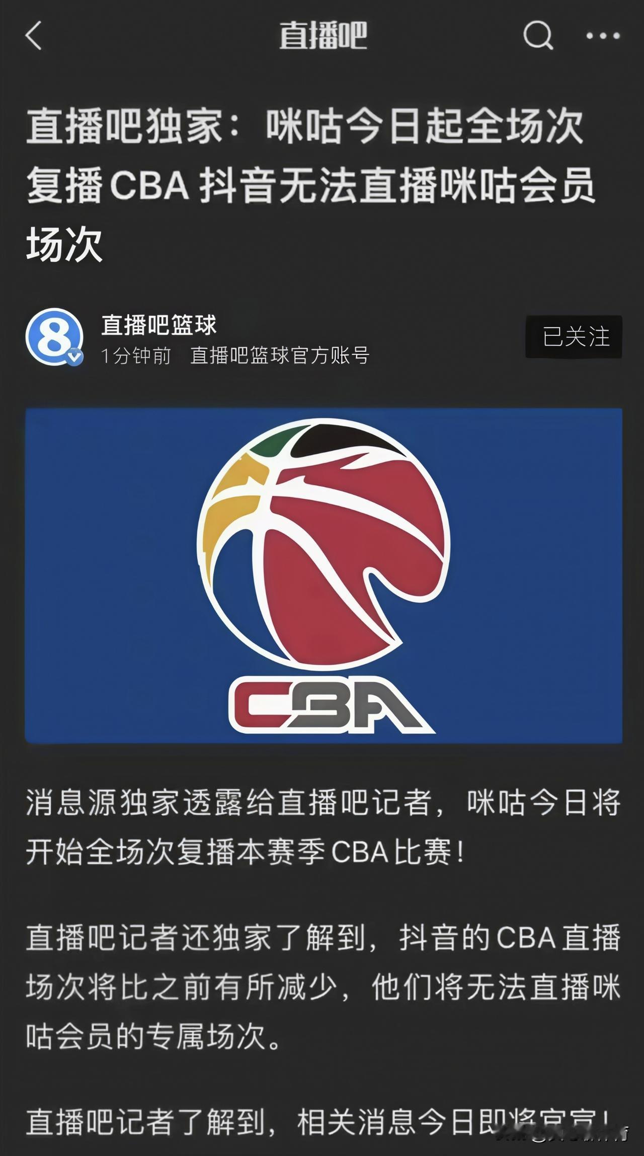 广东队的CBA关键赛事还有专业的粤语解说? 今晚还能在广东体育看广东东阳光VS北京北汽的榜首大战? 咪咕即将拥有CBA直播独播权? 会员日的比赛只能通过咪咕视频观看? 刚适应抖音平台CBA直播的百花开放,关键赛事又成为独播日[笑哭][笑哭][笑哭]