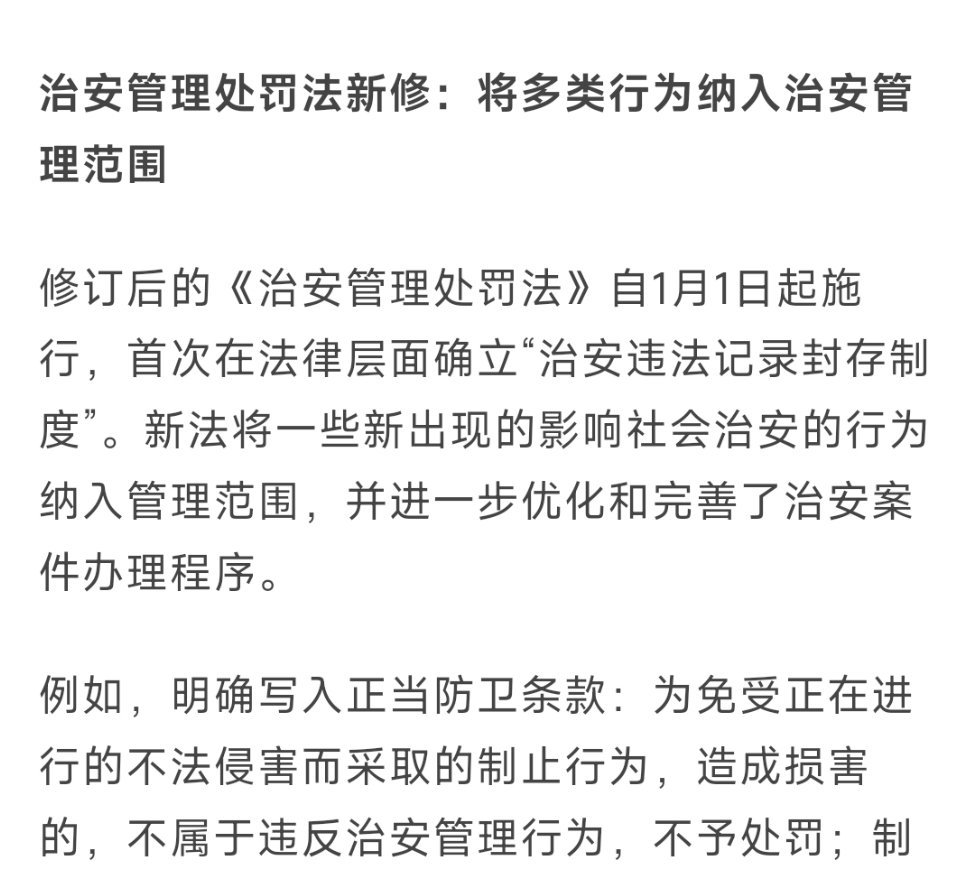2026年新规今起施行其实这些新规里最重要的就是新治安管理处罚法。里面被讨论最多的是违法记录封存,也就是吸毒记录封存那条,这条目前是已经正式实施了。我觉得改的最好的是14岁以上未成年以后可以拘留了这条。另外还有一些比较有意思的,比如遛狗不栓绳,以后导致别人受伤的,处1000元以下罚款;情节较重的,可以拘留五到十天了。