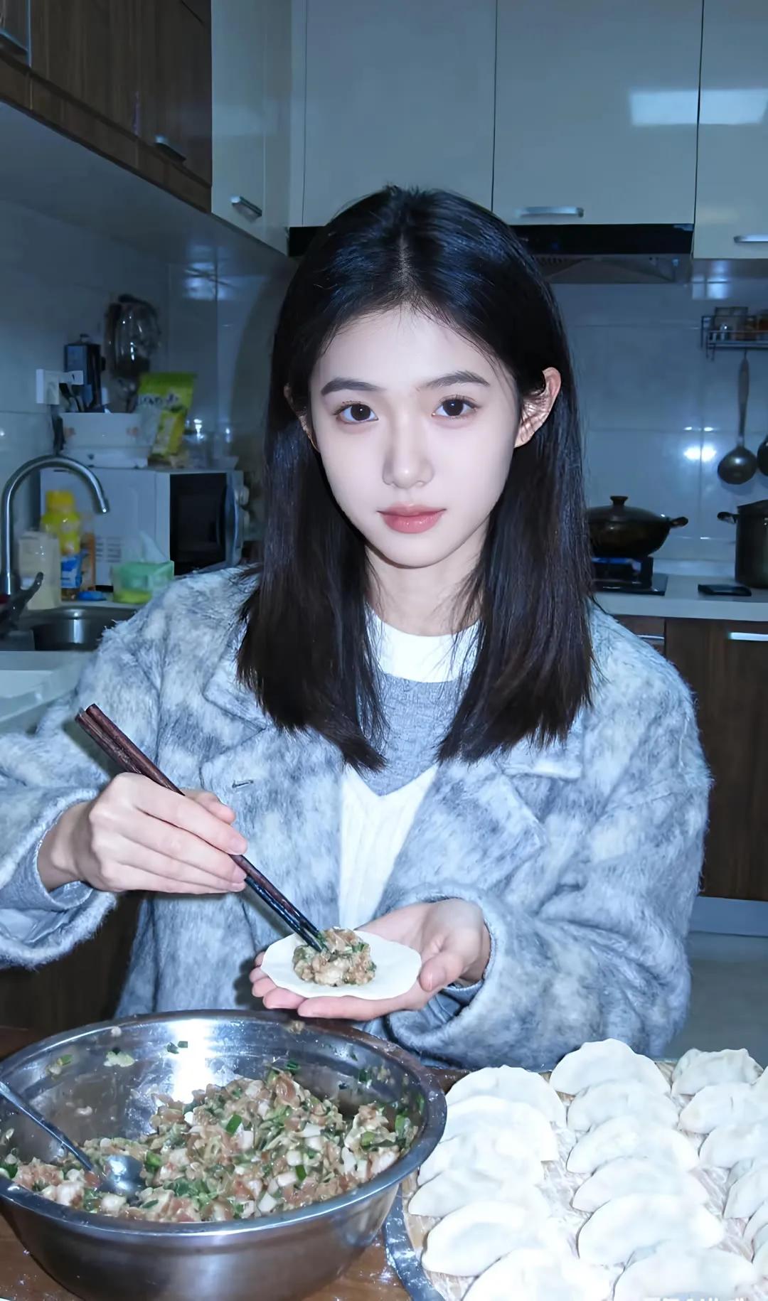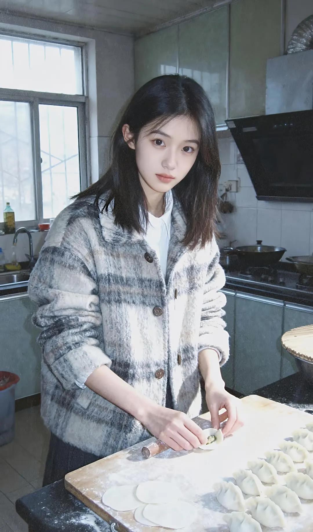 冬日暖阳下,亲手包制美味饺子,家的温馨弥漫心间。街拍 高清美女