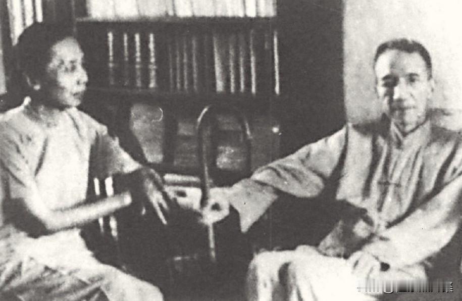 1960年暑假,陈寅恪与夫人唐筼在中山大学东南区一号楼二楼寓所起居室的合影。这栋建筑原为岭南大学麻金墨屋一号,1953年陈寅恪一家迁入后一直居住于此,直至1969年。1960年时,陈寅恪已双目失明多年(1945年右眼失明,1948年左眼失明),右腿尚未骨折(1962年才摔断),生活起居主要依靠夫人唐筼和助手黄萱照料。