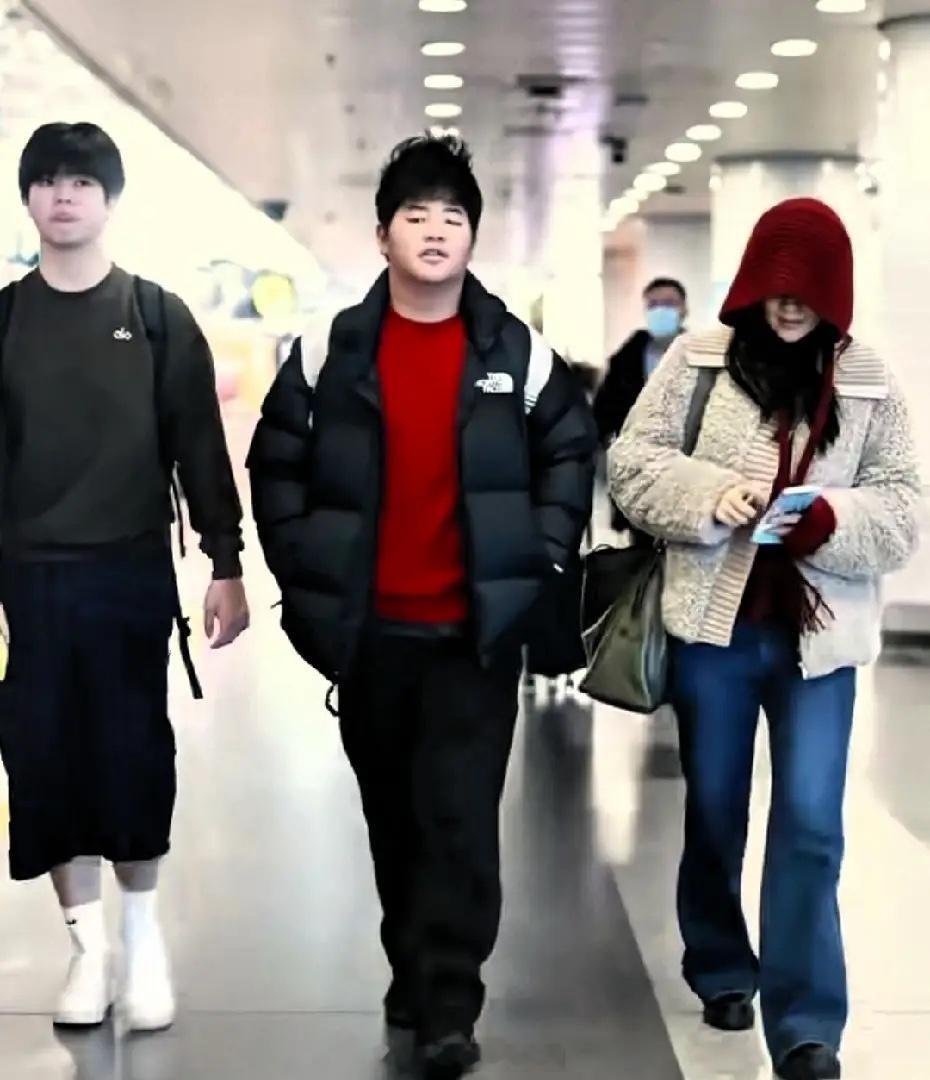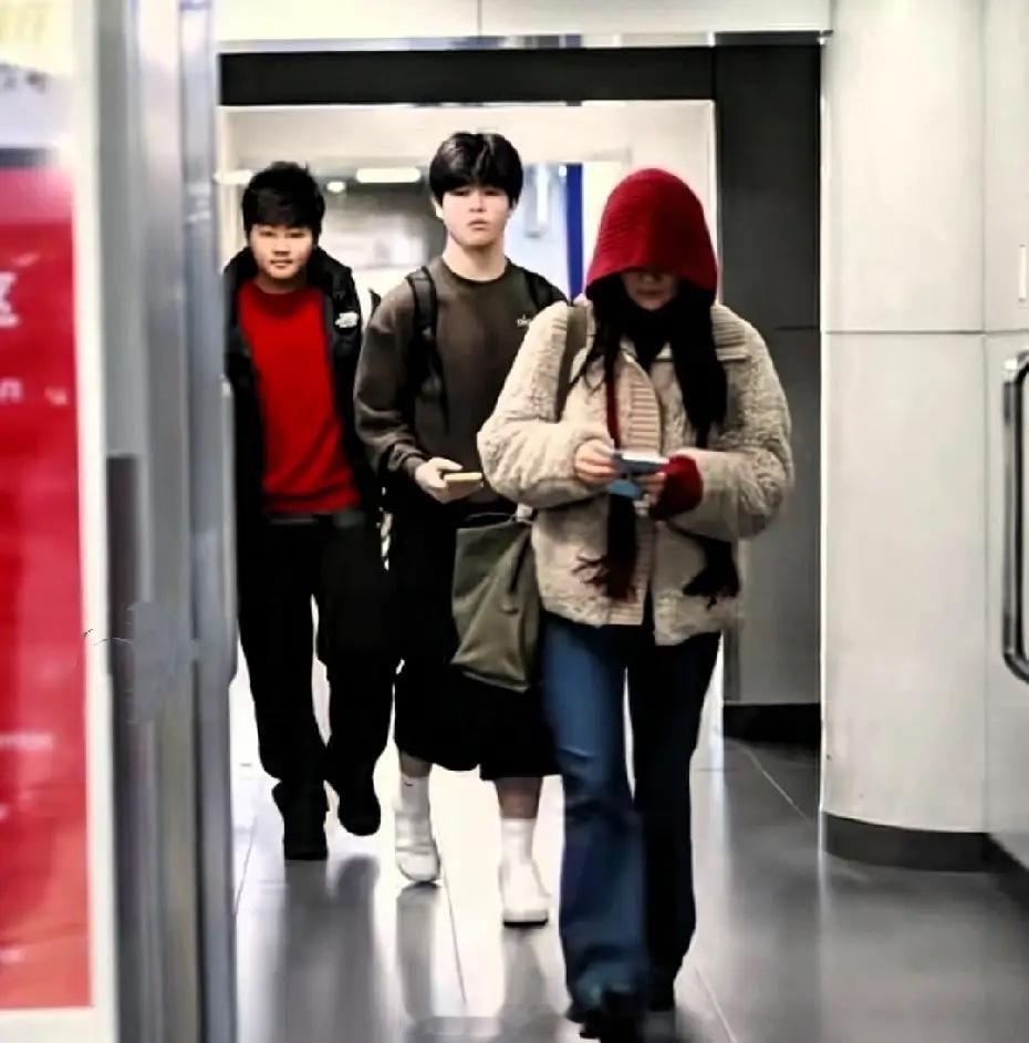 胡可带两个儿子现身机场,安吉才14岁,都长得比妈妈高了!现在孩子真的是营养好,越