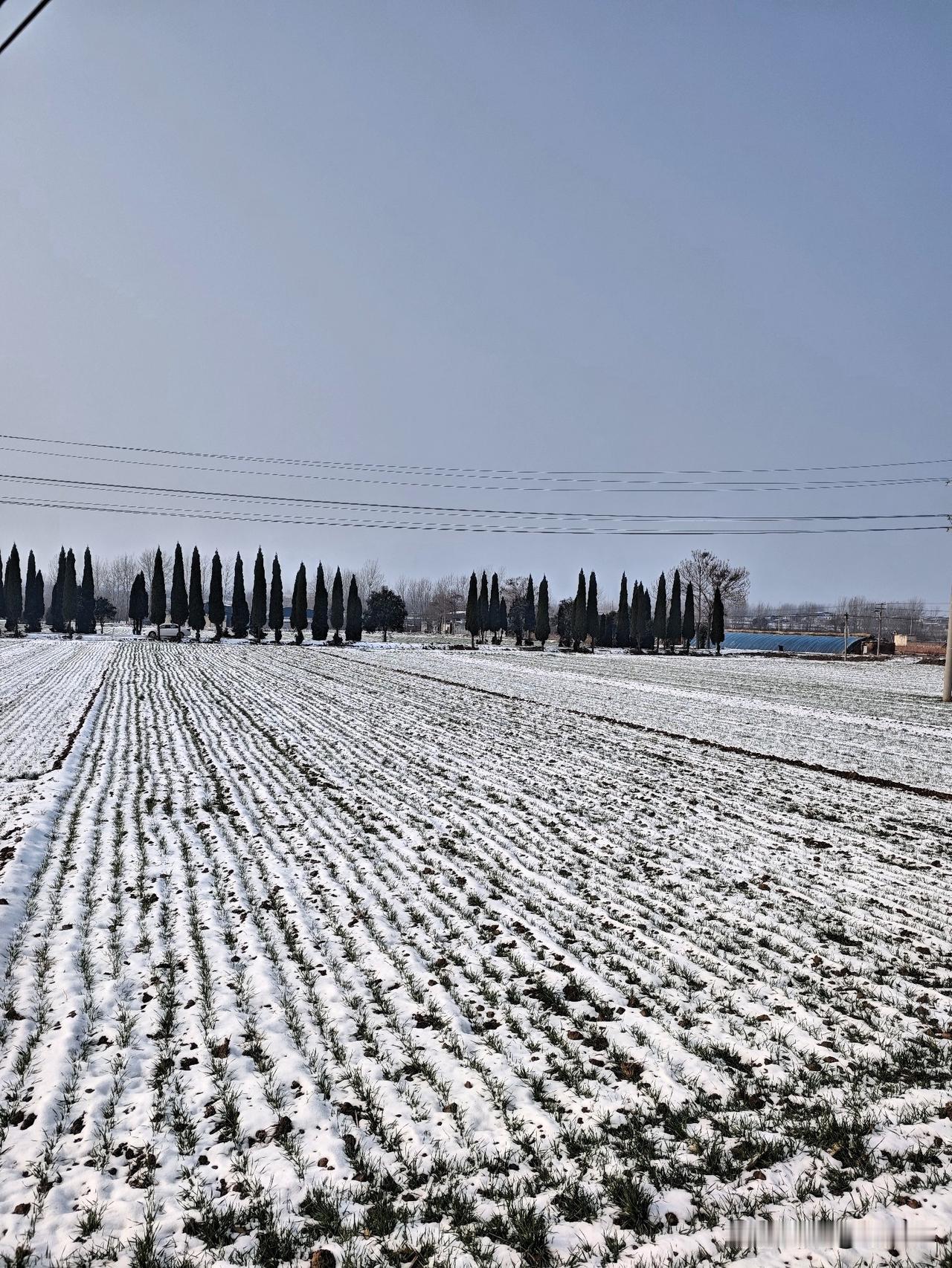 回老家的田埂上走了走,雪还没化干净,薄薄一层盖在麦苗上,绿莹莹的苗尖戳破白雪,看着就有劲儿。 路边的塔柏直直地站着,像一排守着田地的老伙计。 风刮在脸上有点凉,但晒着太阳又暖乎乎的,电线在蓝天上拉着线,远处还有个蓝色的大棚子。 这乡下的冬天,不张扬,却踏实得很,脚踩在雪混着泥土的地里,心里也跟着静下来了。 麦苗上的霜 冬季麦苗 松树上的冰凌