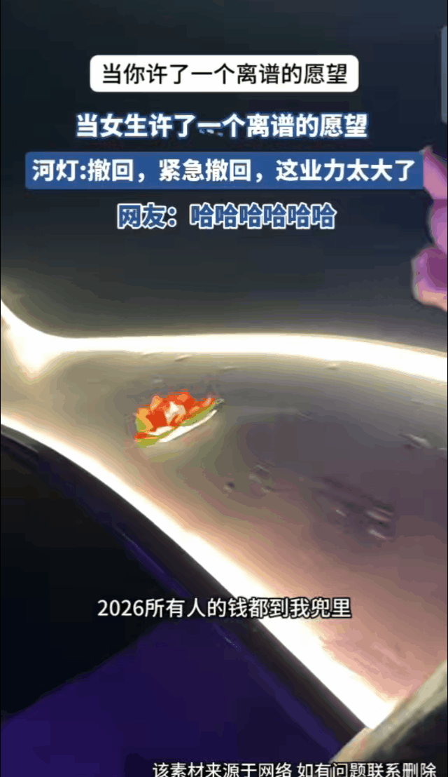 花了三块钱,许了个三万亿的愿 2026年所有人的钱都到我兜里… 河灯:快快快!撤回!紧急撤回!这业力太大了 这愿望许的属实离谱了,网友们都笑翻在屏幕前:哈哈哈!给河灯急得都红变绿了,许愿还是得真诚点啊