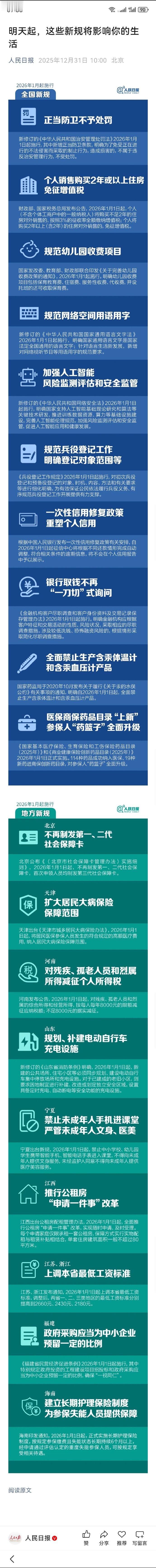 2026年新规今起施行 重点关注正当防卫不予处罚,银行存款不再一刀切!还有85条