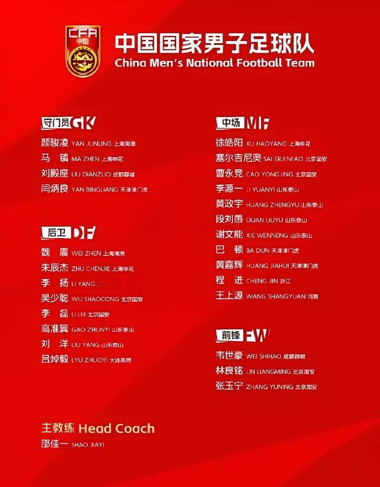 邵佳一公布的国足大名单,北京国安才是大赢家……! 北京国安6人入选新一期国足大名单,除了门将位置,后卫线上有吴少聪,李磊。中场有塞鸟,曹永竟。锋线有张玉宁,林良铭。看来北京国安在本土球员培养方面是独具一格啊,要不然也不可能有这么多国安球员进入国家队! 只不过,后防线上的魏震,李磊,刘洋真的有能力进入国家队吗?无数次国家队比赛已经证明这几个人不堪大用,邵佳一把他们招进来,看来国足确实缺乏人才! 中场的巴顿,曹永竟,程进,黄家辉在俱乐部也不是很出彩,他们是凭什么进入国家队的……? 锋线上就三人,张玉宁强壮但是体力差,林良铭有才华但是不出彩,韦世豪就是一个“火药桶”,随时爆炸,就这三人,能撑起国足的攻击线……? 总的来说,邵佳一公布的国足阵容还是老一套,换汤不换药,没有什么值得期待的地方,一些在俱乐部打替补的球员也能进入国家队,这是中国男足的惯性思维,一朝一夕是改不了的……!中国男足 邵佳一