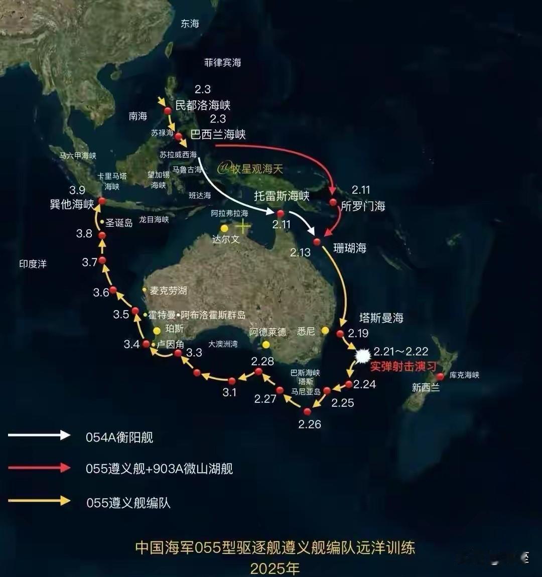 澳方台海说三道四?再来一次055大驱环澳大利亚,给干涉者划红线! 2025年最后一天,澳大利亚外交贸易部对着解放军“正义使命-2025”台海演习喊“关切”!中方直接严正反对:这是颠倒黑白,台海问题纯属中国内政,轮不到外人指手画脚! 澳方是真真关心和平?他的战略研究所早就直白喊出“台湾是吸收中国力量的海绵”,说明白一点就是想借“台独”消耗中国,给美日澳同盟当马前卒。 中国是澳最大贸易伙伴,刚落地的牛肉配额直接卡了其出口脖子,超配额部分要缴55%高关税,经贸合作的蛋糕说凉就凉。 055大驱的底气,可不是空谈。2025年2月,055编队就曾在塔斯曼海实弹开火,130毫米舰炮精准命中靶标,澳军派P-8A反潜机紧盯不放,连外媒都猜编队藏着核潜艇。更别说关岛外海近距离跟踪美无人艇、西太平洋常态化巡航,055的远洋存在早已不是新鲜事,1500公里射程的鹰击-21导弹,足以让干涉者掂量代价。 澳方的“关切”也根本站不住脚。美国1个月内两度对台军售超114亿美元,才是台海紧张的根源,中方演习只是正义反制 。它自己违背建交承诺干涉内政,却指望中方忍气吞声?055若再次环澳,不是要挑衅,而是让澳方看清:中国捍卫主权的能力,已覆盖到任何妄图干涉的角落。 中澳关系刚回暖就踩红线,实在不明智。台海不是澳方的地缘棋盘,055大驱的航迹,会再次告诉澳方,谁敢干涉中国内政,就必须承受相应后果,这一点,澳方该醒醒了!