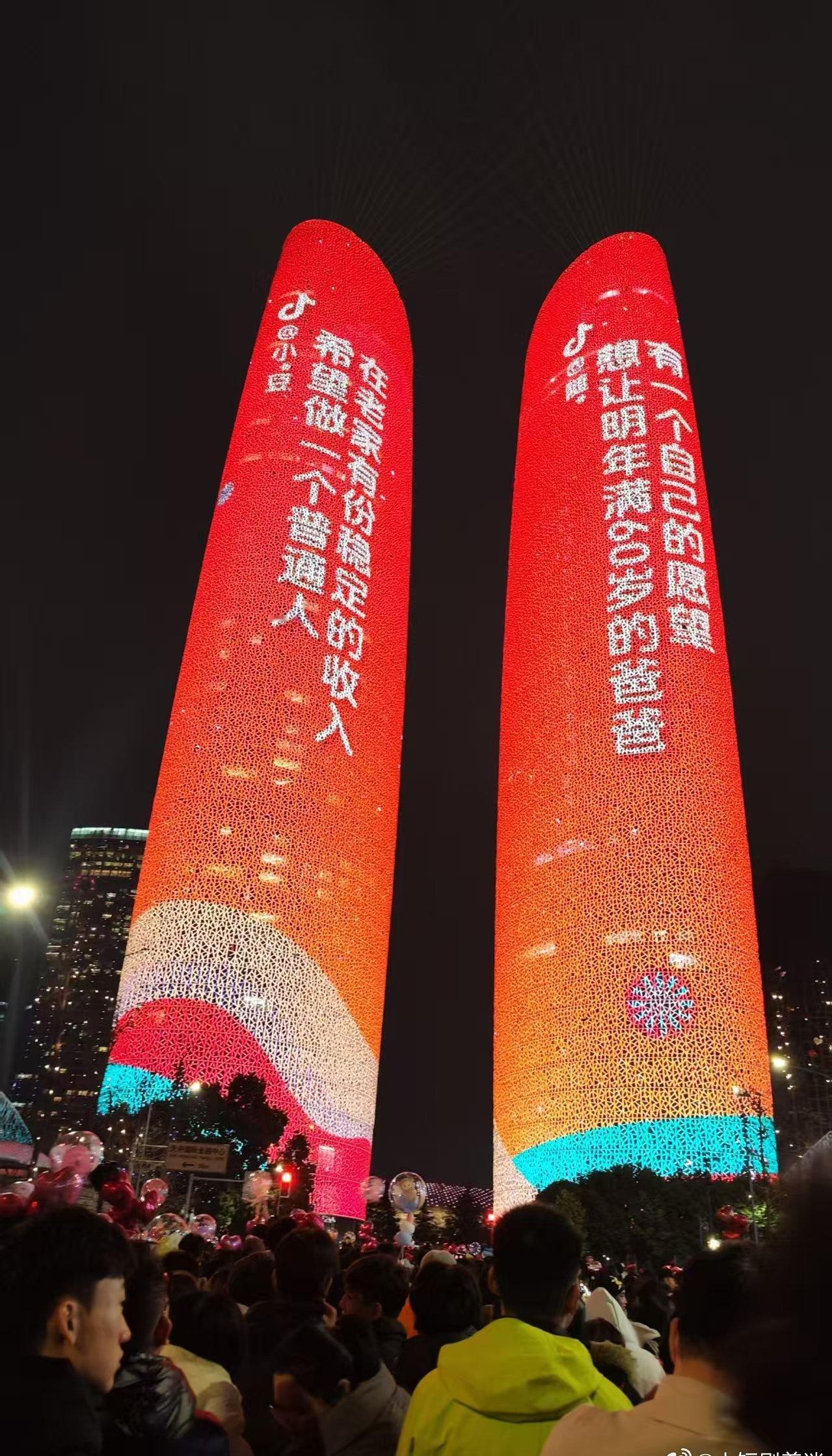 跨年夜被成都双子塔喊话被翻牌了真的是很喜欢这样的画面啊,也让我们看到了所有人2026美好的心愿