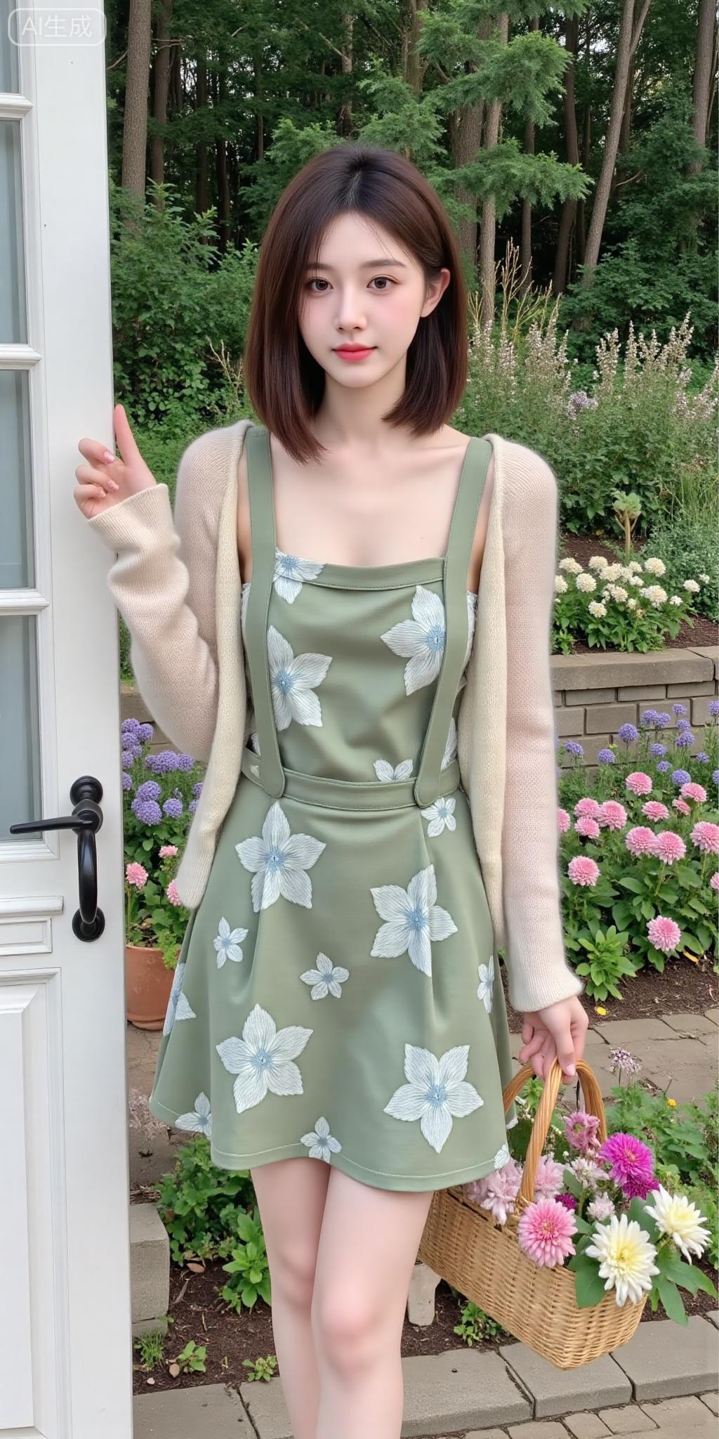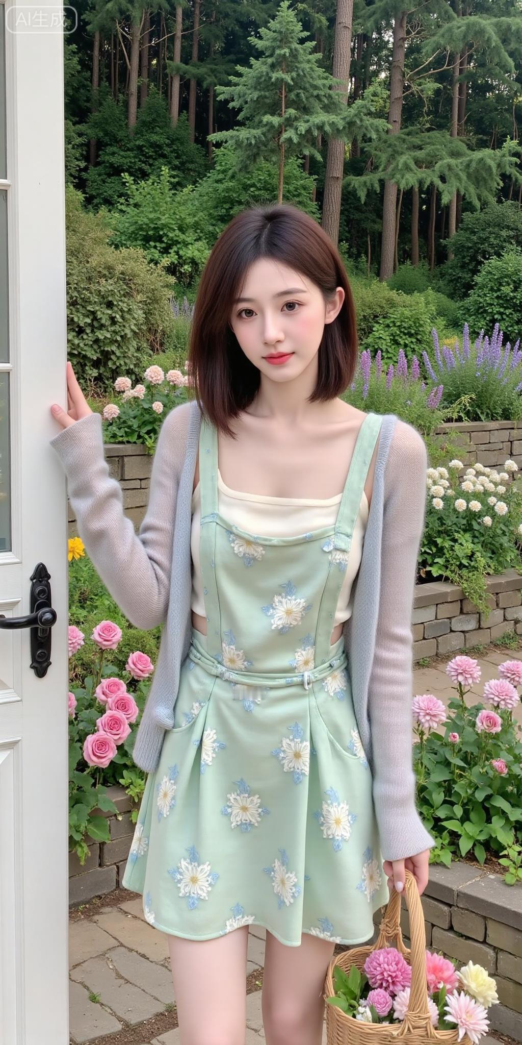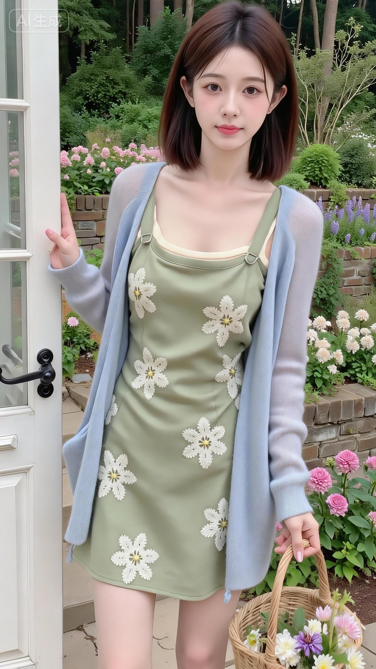 花园门边的清新甜妹好戳 薄荷绿碎花裙叠浅黄内搭,罩件淡蓝开衫,像把春日花园穿在身上~ 拎着花篮子靠在门边,连空气都裹着软乎乎的温柔感,这就是森系甜妹的氛围感吧!气质碎花裙穿搭