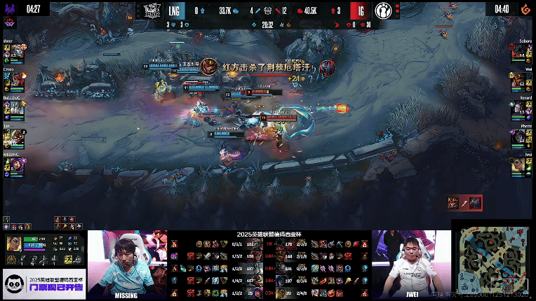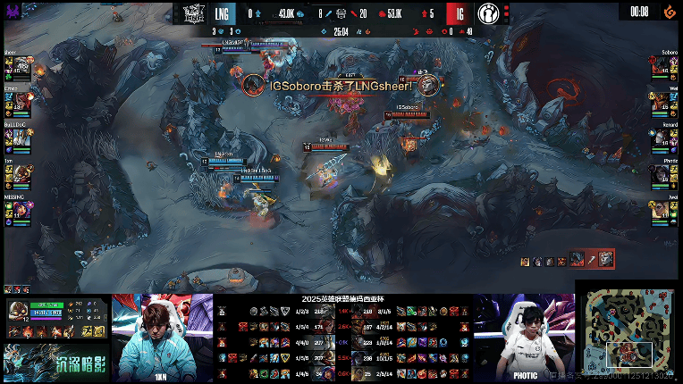 22分钟,IG中路打出0换3,LNG彻底溃败