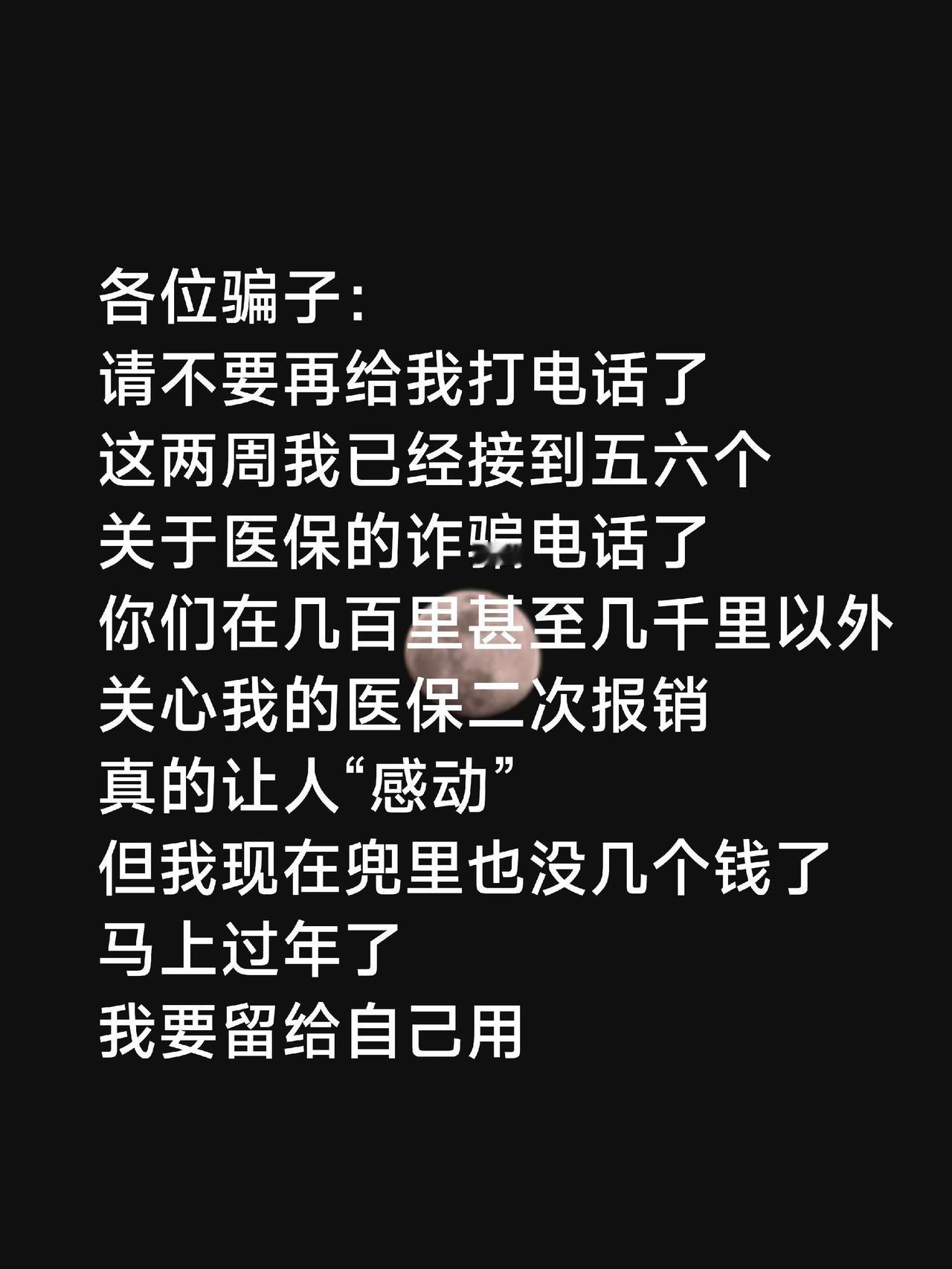 各位骗子,请不要再给我打电话了