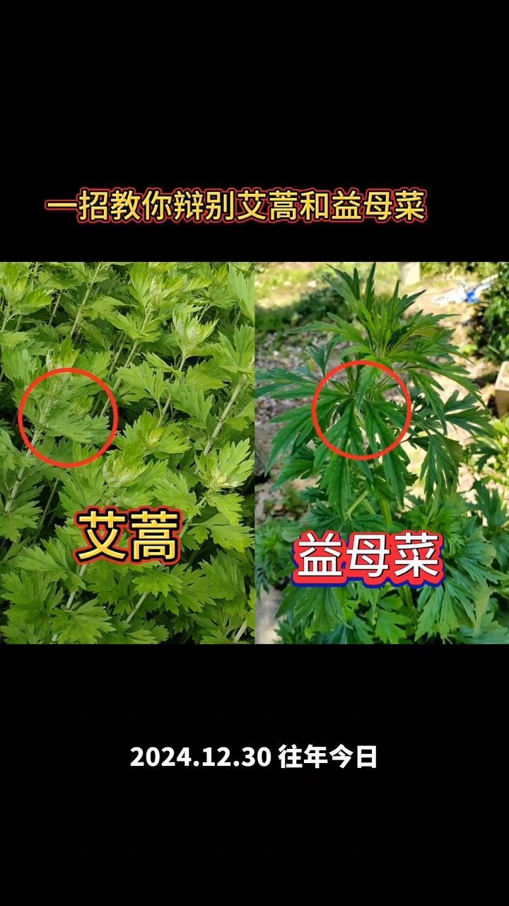💊益母草和艾草真的很像,教你3个方法轻松区分! 1️⃣叶片形状:益母草叶子呈掌状3裂,边缘有粗锯齿;艾草叶子是羽状深裂,两面都有白色绒毛,摸起来毛茸茸的~ 2️⃣气味不同:捏碎益母草叶子,有股草腥味;艾草叶子有独特的清香味,闻着很舒服~ 3️⃣茎秆特征:益母草茎秆较细弱,颜色偏嫩绿;艾草茎秆粗壮些,带点紫色,表面还有浅棱~ 记住这几点,以后就不会认错啦!