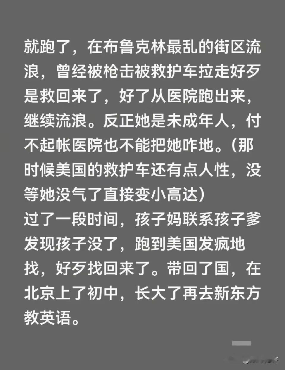 亲身经历斩杀线,被她中国亲妈捞了回来。 事实上真的证明了:旧社会把人变成鬼,新社会把鬼变成人。 哦,不对,应该是资本主义把人变成鬼,社会主义把鬼变成人。 或者说美国文化把人变成鬼,中国文化把鬼变成人。 谁才是野蛮,谁才是文明? 一目了然。 点右上角关注我,我们一起去看这个魔幻的世界 加一个新发现,美国斩杀线这个话题居然消失了,取而代之的居然是社会斩杀线![奸笑]有点意思,